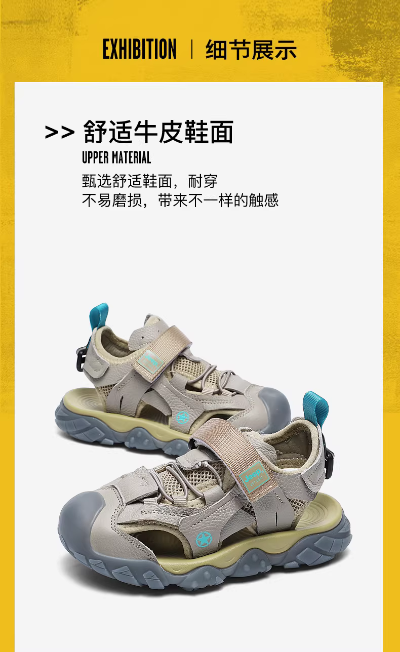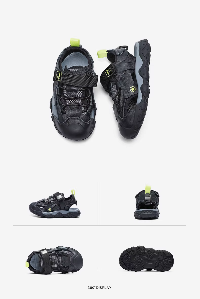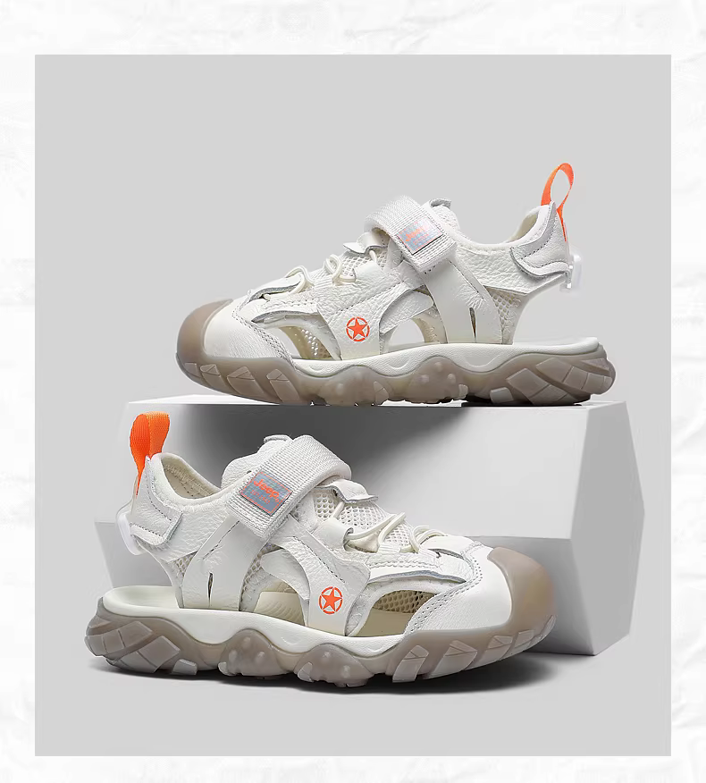- Giày sandal trẻ em mùa hè kiểu kín mũi đế mềm da bò dành cho trẻ lớn hơn, mẫu mới 2024, giày đi biển cho bé trai