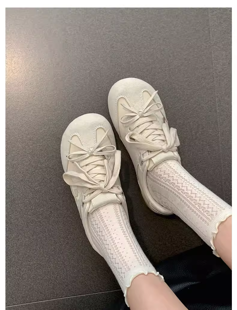 - Giày tập ballet tăng chiều cao đa năng kiểu retro màu trắng dành cho nữ, mẫu mới thu đông 2025, giày thể thao đế bằng phong cách Forrest Gump