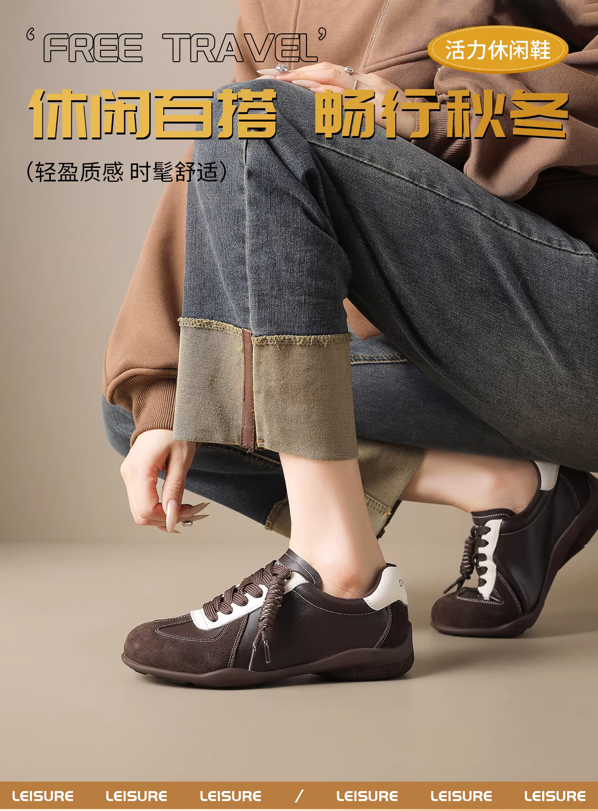 Giày tập Daphne dành cho nữ 2025, giày thể thao thời trang mới, giày da nâu cổ điển, giày đế bằng