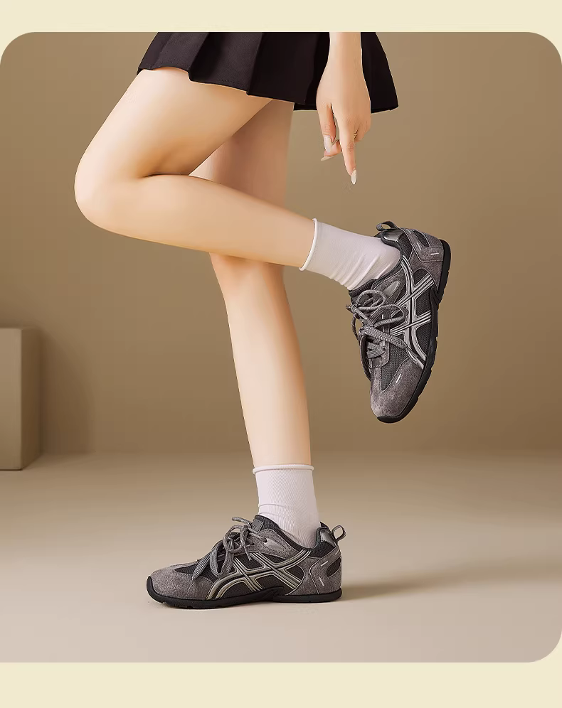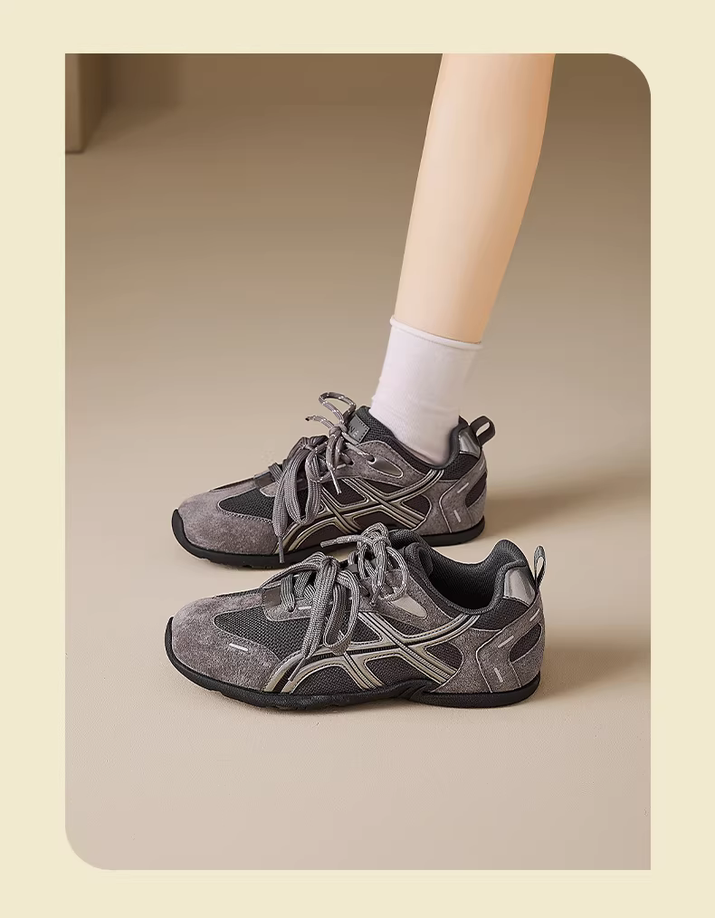 - Giày tập luyện đạo đức màu xám Daphne dành cho nữ 2026 giày đua múa ba lê cổ điển mùa xuân mới giày thể thao đế dày tăng chiều cao