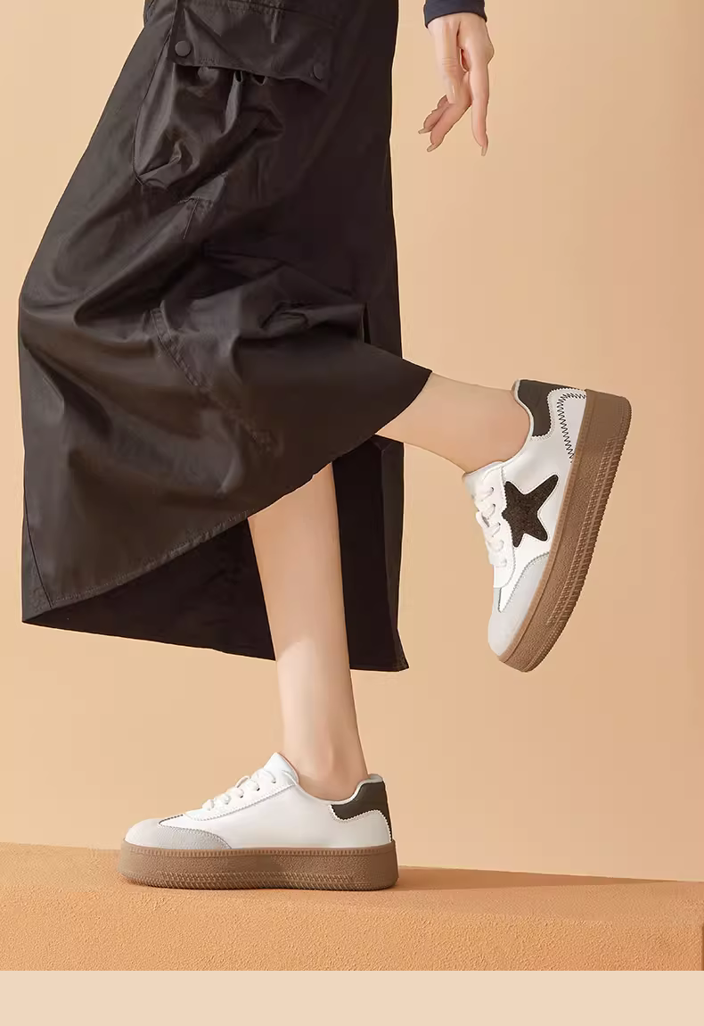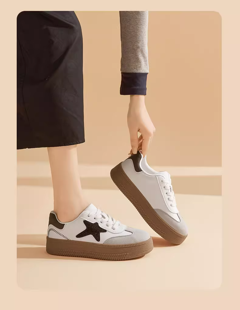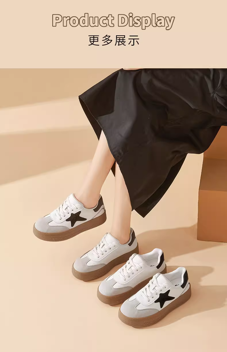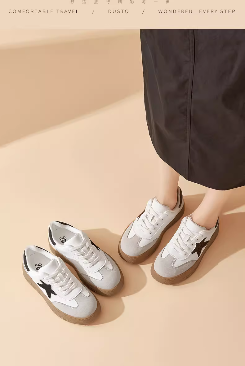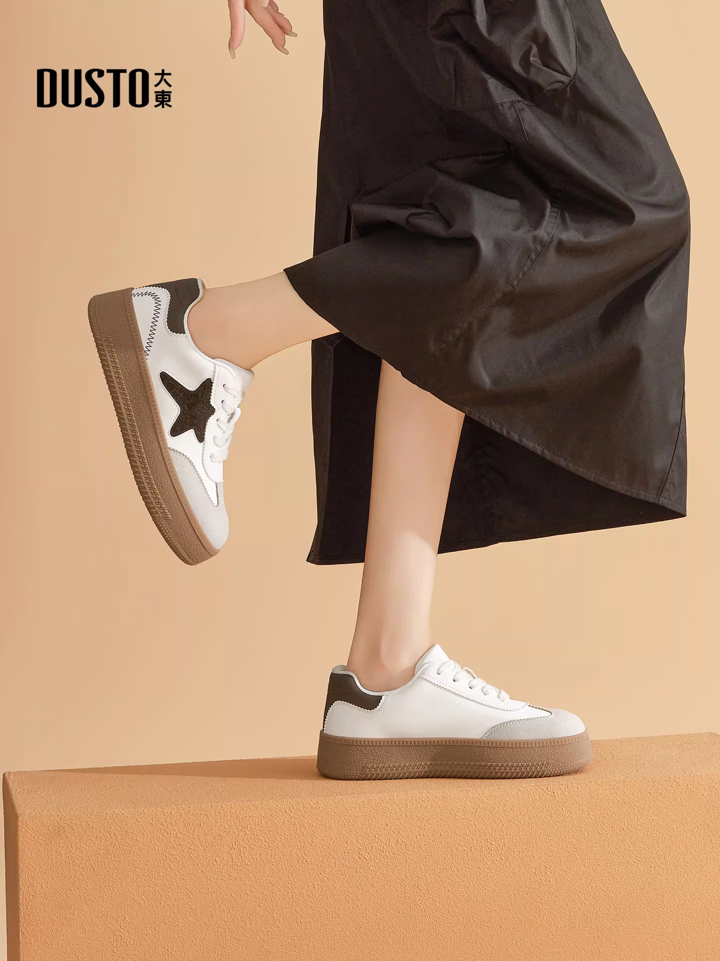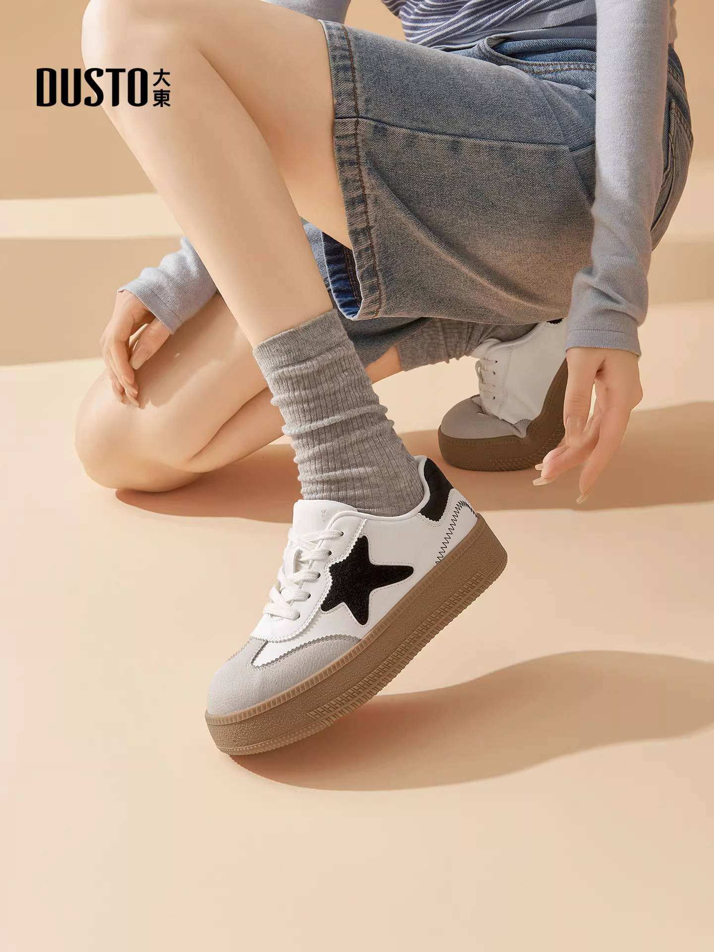 - Giày tập luyện đế dày Dadong dành cho nữ, giày thường ngày cổ điển thu đông 2025 mới, giày thể thao đa năng, giày trắng họa tiết ngôi sao.