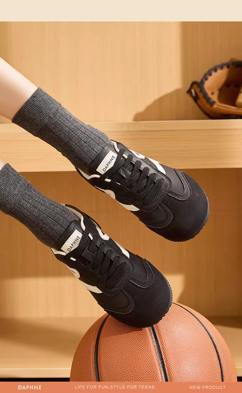 - Giày tập luyện đen Daphne dành cho nữ, mẫu mới thu 2025, kiểu retro, đế bằng, giày thể thao đế mỏng, giày ba lê, giày chạy bộ