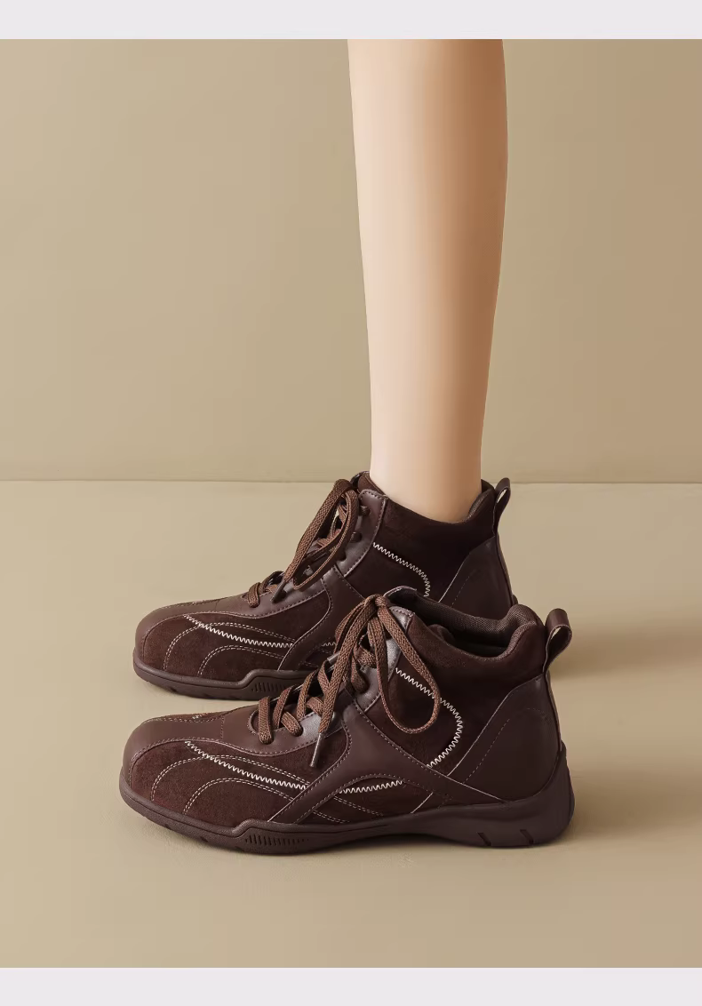 - Giày tập luyện Đức lót lông Daphne Maillard dành cho nữ, giày nâu cổ điển mùa thu đông 2025, giày cao cổ đế dày.