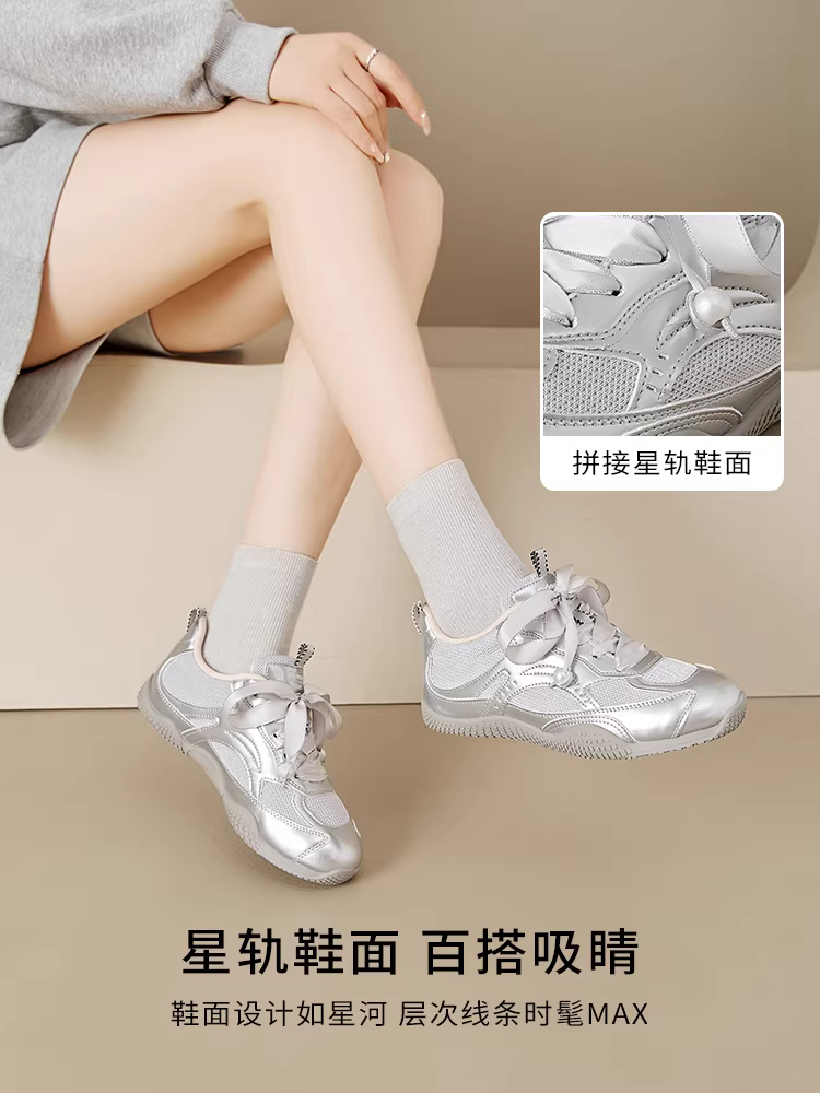 Giày tập múa ba lê bạc Dadong dành cho nữ 2025 Mẫu mới Thu/Đông Bán chạy Thời trang Đế mềm Giày Forrest Gump Giày thể thao Giày thường ngày