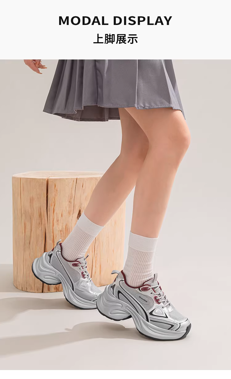 - Giày thể thao bố dành cho nữ màu bạc, đế dày, mẫu thu đông 2025 mới, giày lưới thoáng khí, giày thể thao đa năng, phong cách thường ngày.