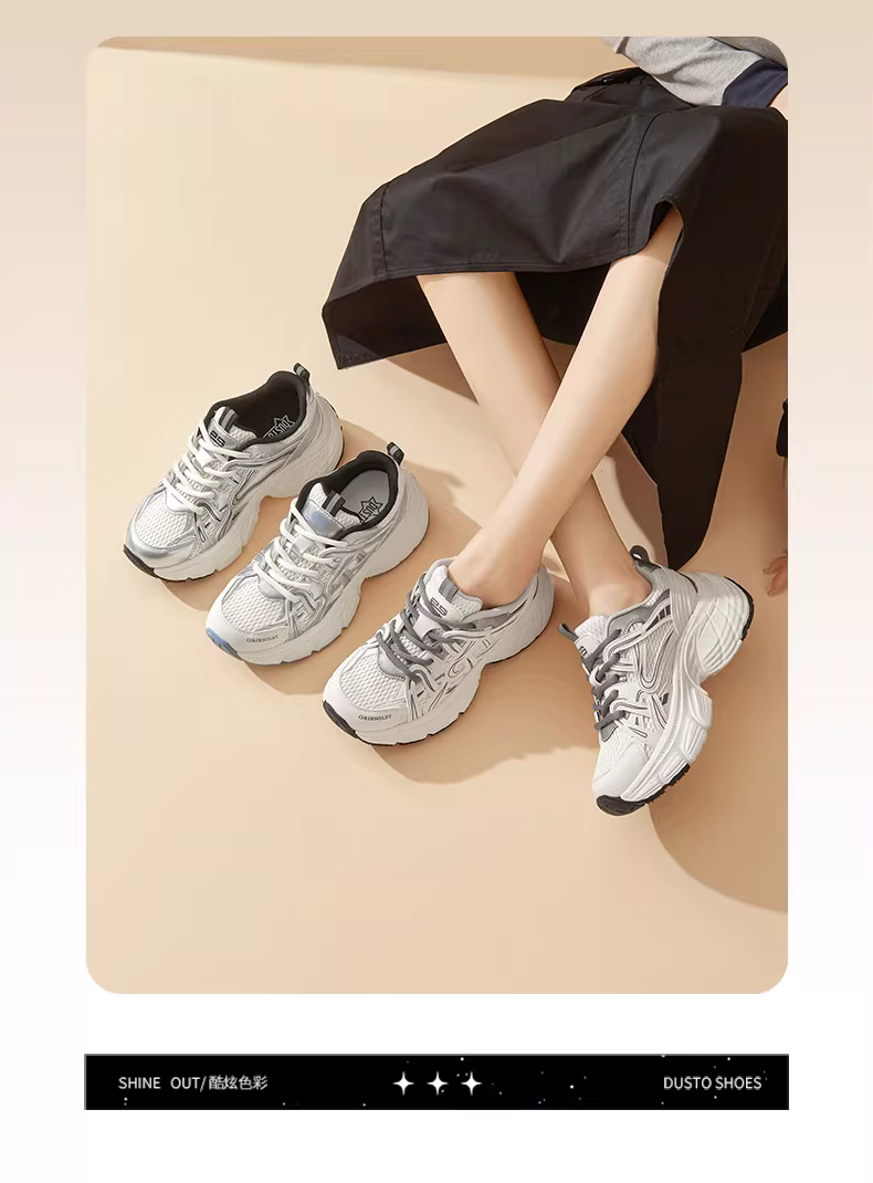 - Giày thể thao bố dành cho nữ màu bạc, kiểu dáng thời trang và tôn dáng, mẫu mới thu đông 2025, giày tăng chiều cao, giày thể thao.