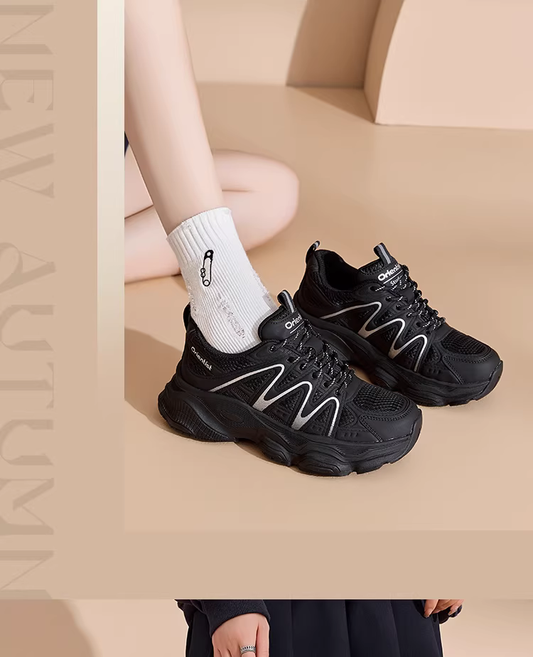 - Giày thể thao bố dành cho nữ màu đen, giày thể thao đế dày tăng chiều cao mùa thu đông 2025 mới dành cho nữ.
