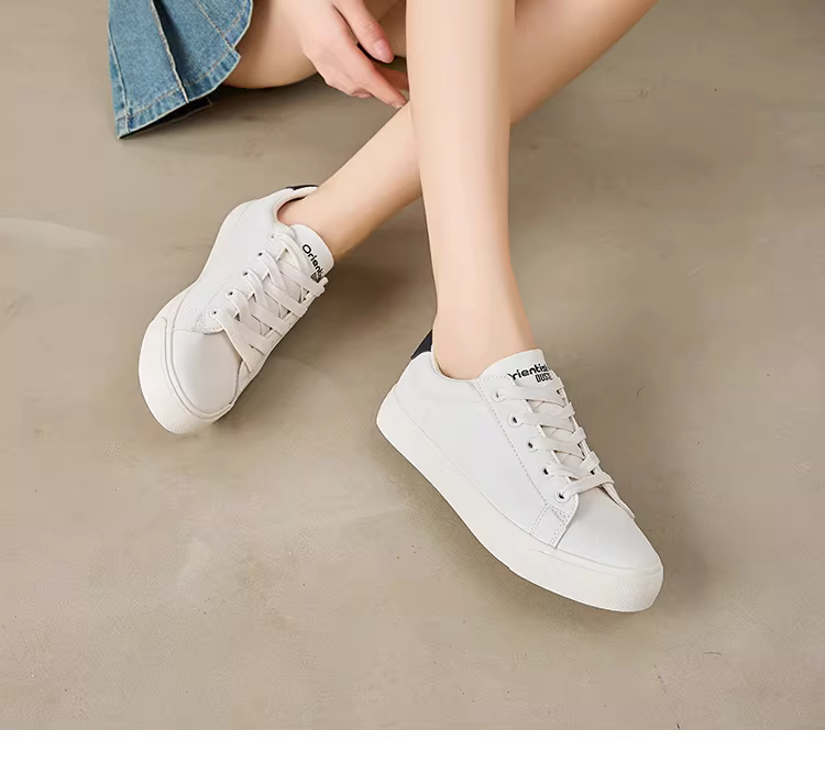 - Giày thể thao Dadong nữ 2025 kiểu mới thu đông đế dày đế bằng đa năng buộc dây học sinh màu trắng giày thể thao
