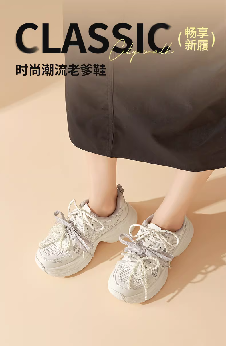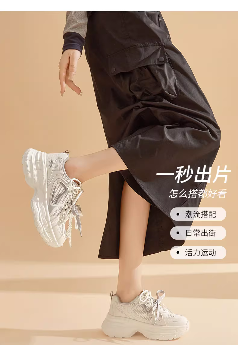 - Giày thể thao đế dày cho nữ, kiểu mới thu đông 2025, giày màu xám cho nữ, giày thể thao tăng chiều cao rất thời trang.