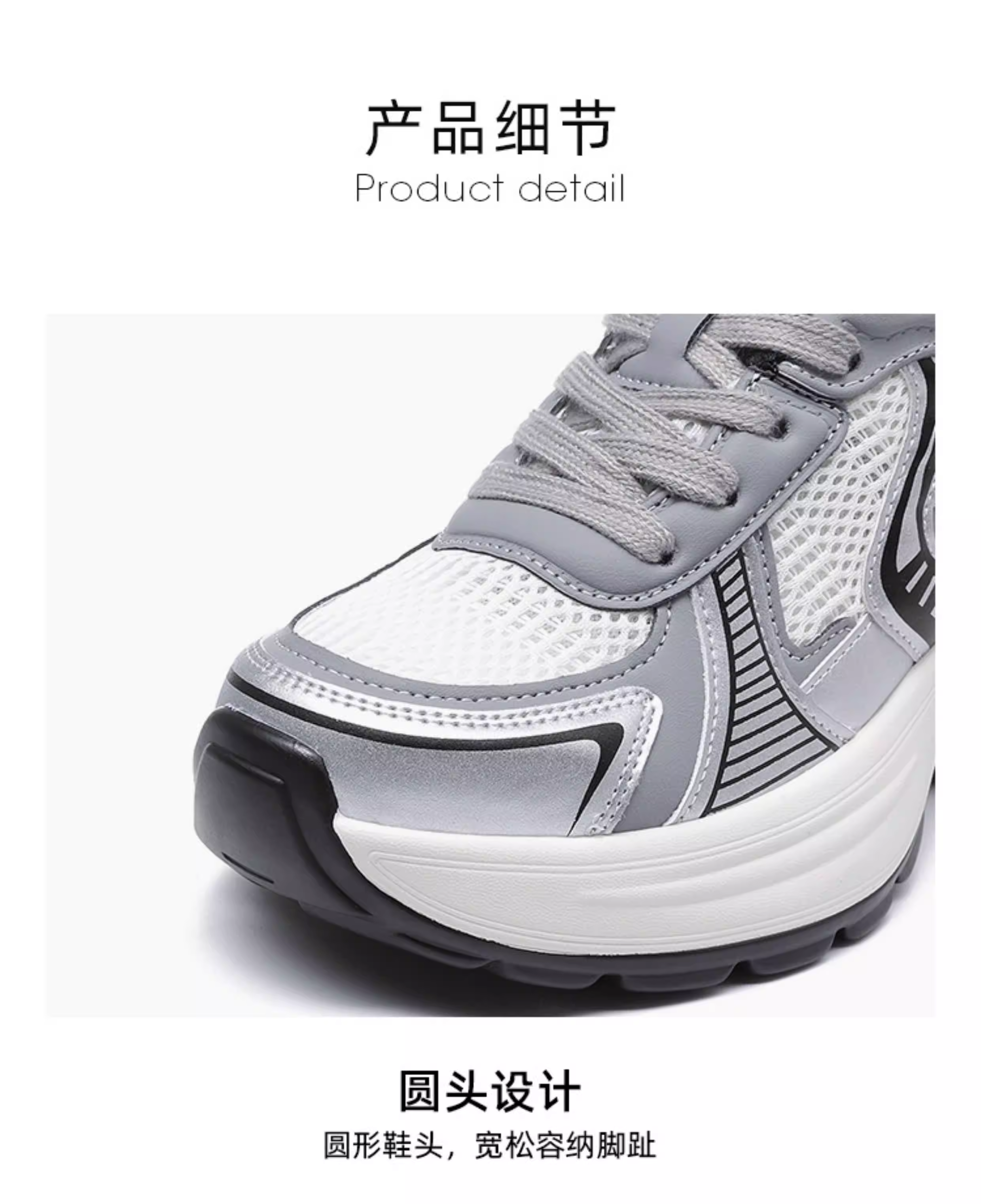 - Giày thể thao đế dày cho nữ, mẫu mới thu đông 2025, giày tăng chiều cao cho nữ nhỏ nhắn, giày thể thao màu bạc phong cách thường ngày.