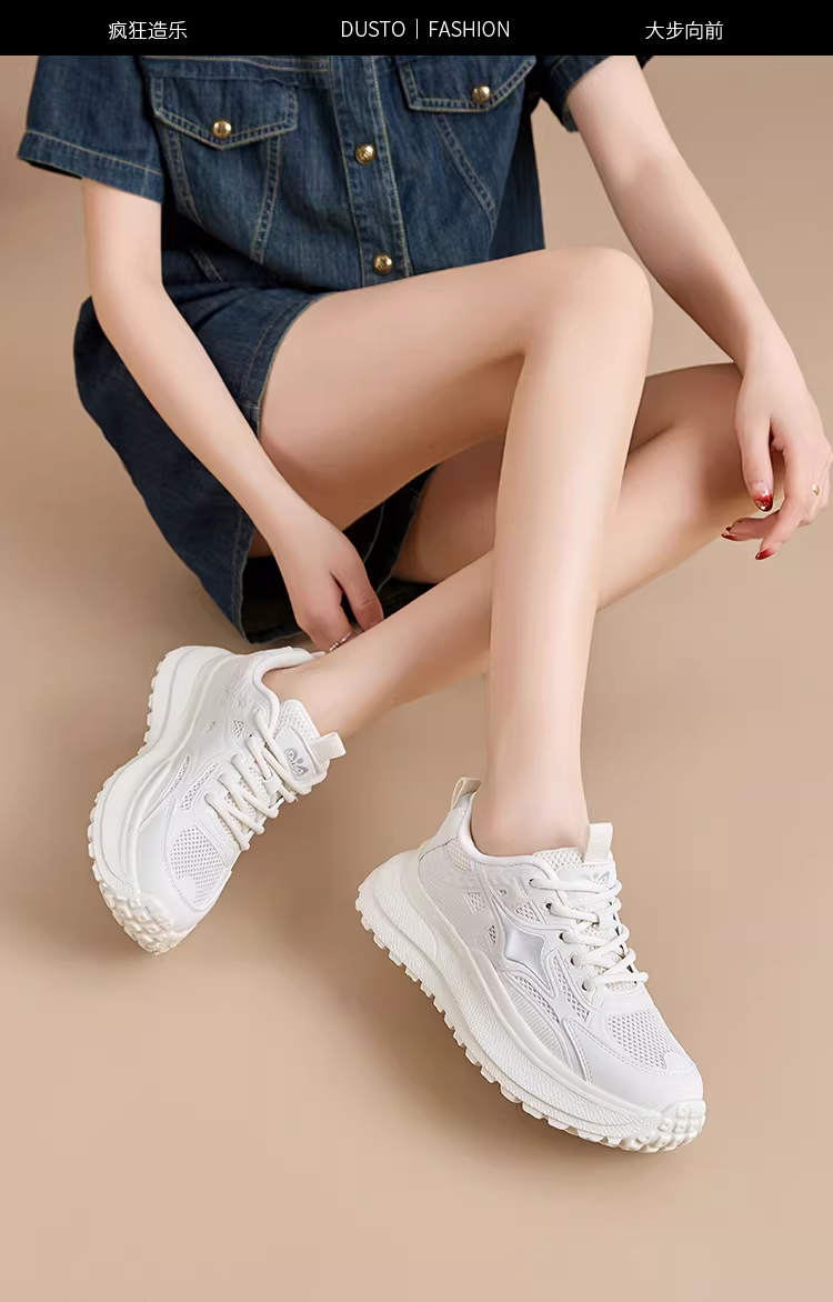 - Giày thể thao đế dày Dadong dành cho nữ 2025, mẫu mới thu đông, giày lưới thoáng khí, đa năng, màu trắng.
