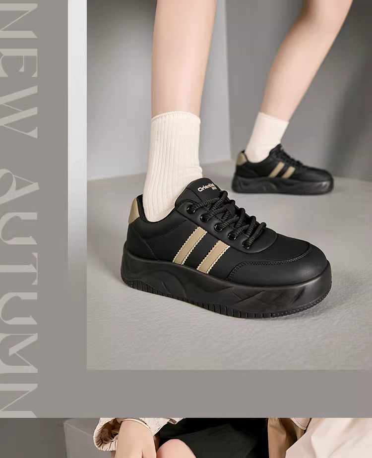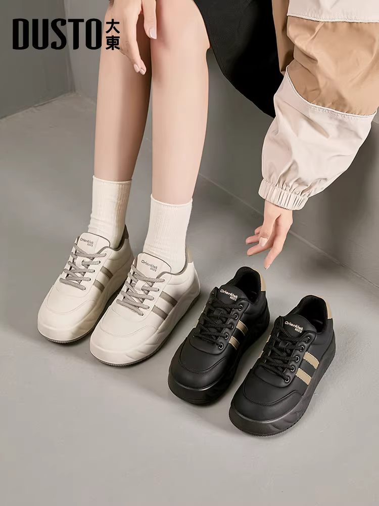 - Giày thể thao đế dày Dadong dành cho nữ, giày thu đông mới 2025, giày trắng tăng chiều cao cho nữ, giày lười, giày thể thao.