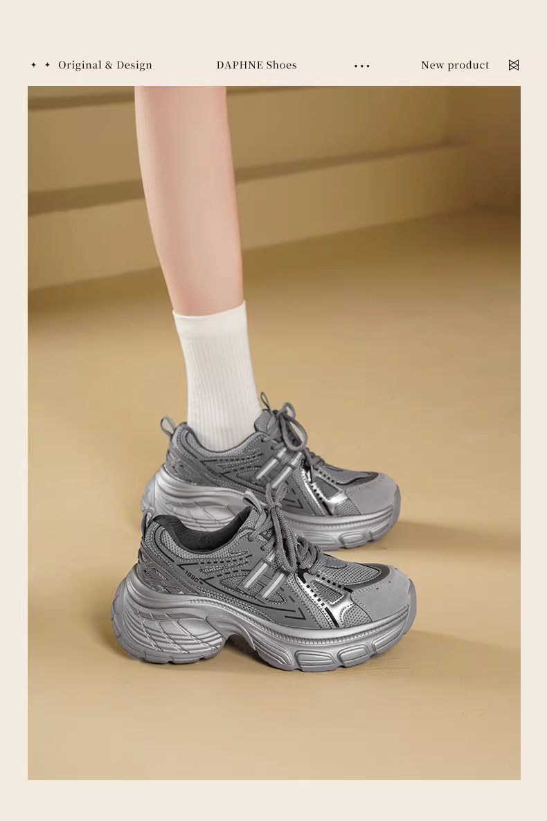 Giày thể thao đế dày Daphne dành cho nữ, mẫu mới xuân 2025, tăng chiều cao, đa năng, màu xám, kiểu dáng năng động
