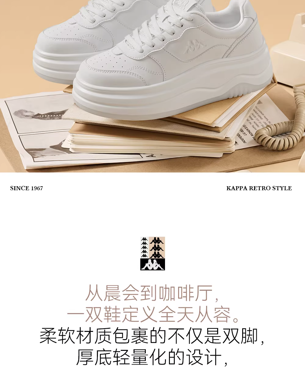- Giày thể thao đế dày Kappa dành cho nữ, giày trắng tăng chiều cao đa năng phổ biến năm 2025, giày thể thao mùa đông mới và giày thường ngày.