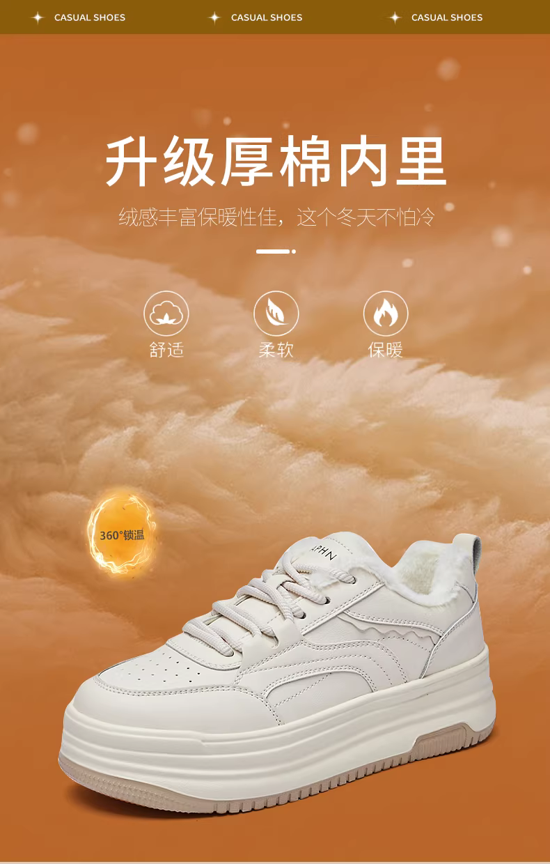 - Giày thể thao đế dày lót lông cừu màu trắng Daphne dành cho nữ 2025, giày mùa đông mới bằng cotton đa năng, tăng chiều cao, dành cho người nhỏ nhắn