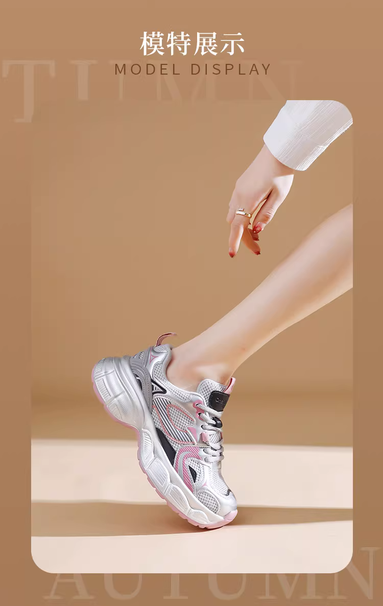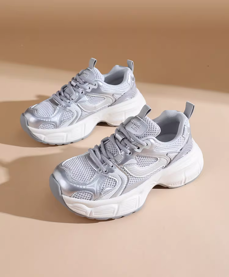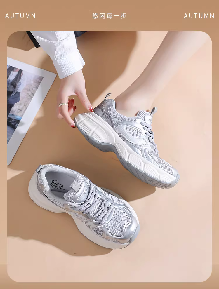 - Giày thể thao đế dày màu bạc dành cho nữ, giày thu đông mới 2025, giày tăng chiều cao cho nữ nhỏ nhắn, giày thể thao nữ.