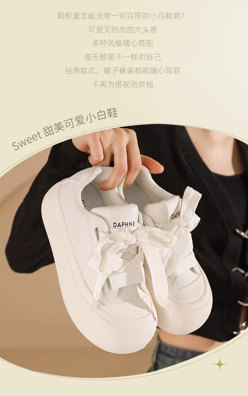 - Giày thể thao đế dày màu trắng Daphne dành cho nữ, kiểu mới 2025, giày vải đa năng, giày thể thao nữ