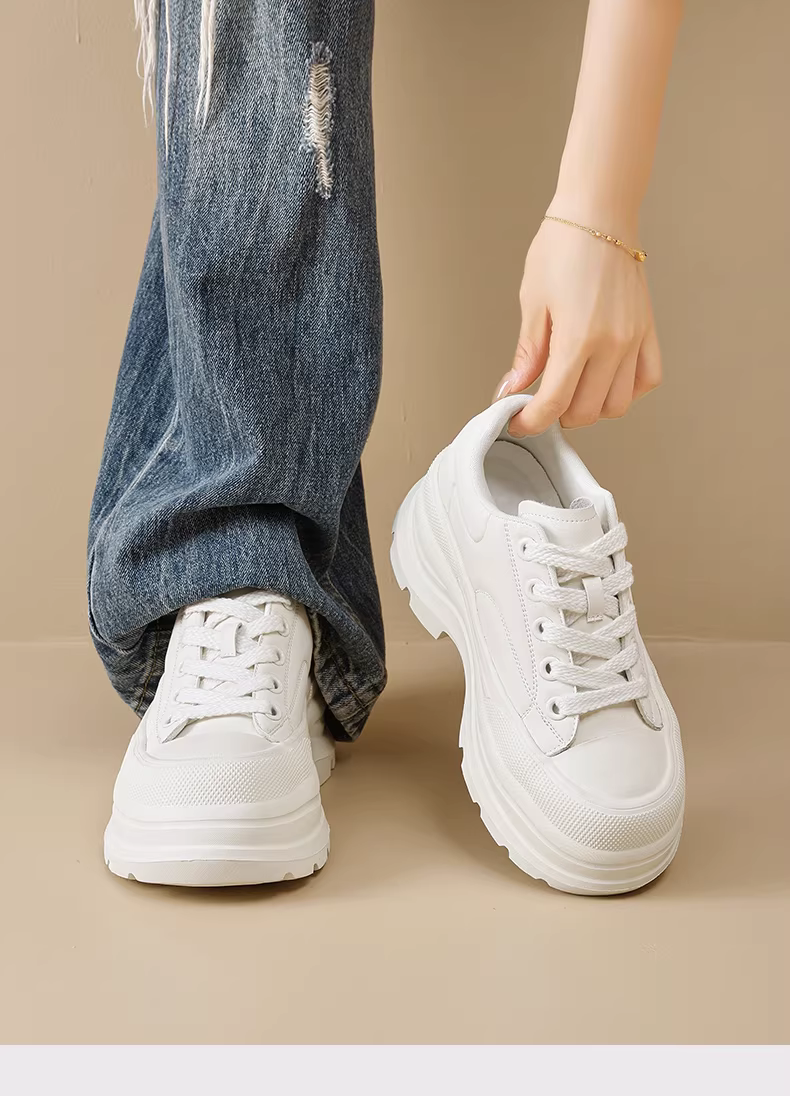 Giày thể thao đế dày màu trắng Daphne dành cho nữ, mẫu mới thu đông 2025, kiểu dáng thời trang, giày bố đen, giày thể thao tăng chiều cao.
