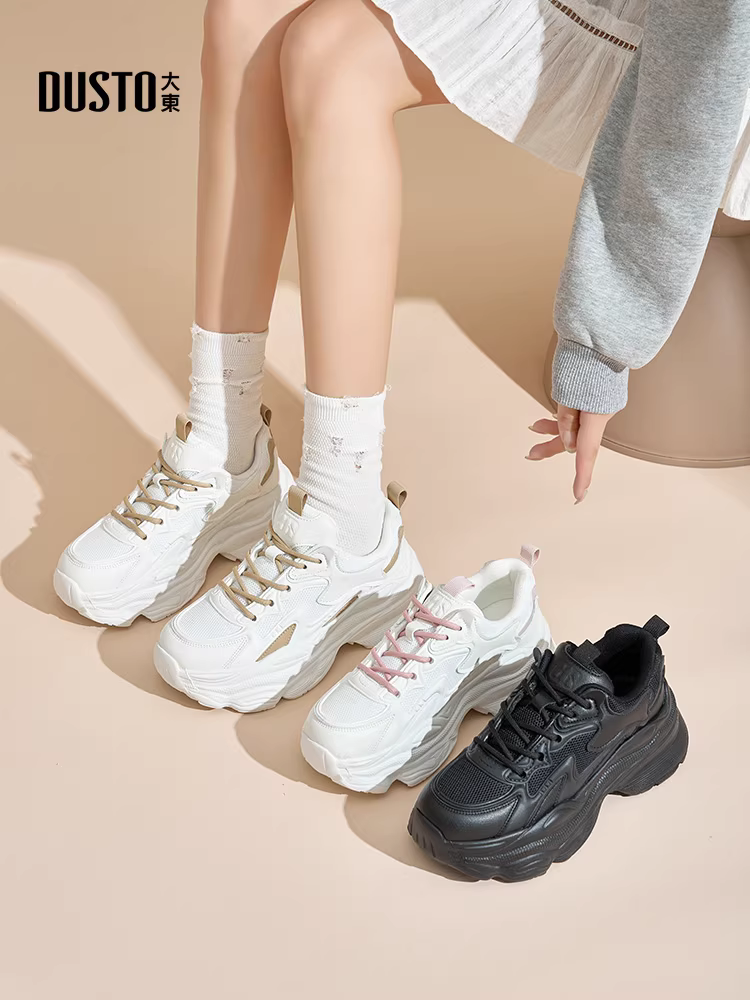 - Giày thể thao đế dày nữ, mẫu mới hot mùa thu đông 2025, giày trắng đa năng, phong cách thể thao năng động.