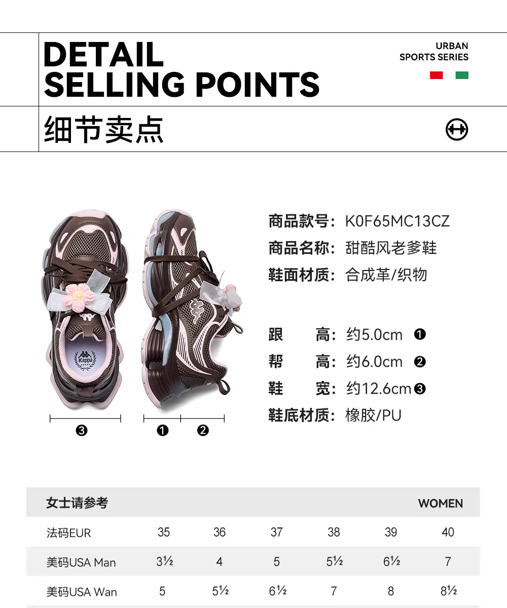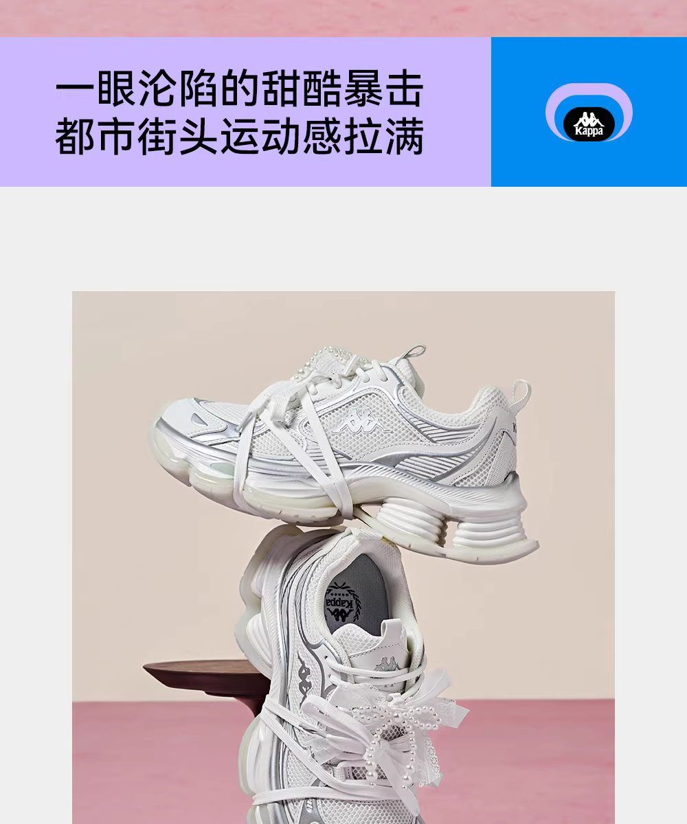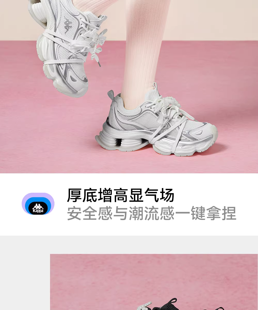 - Giày thể thao đế dày tăng chiều cao Kappa dành cho nữ mùa đông 2025, kiểu dáng cổ điển retro, màu trắng, phong cách casual.