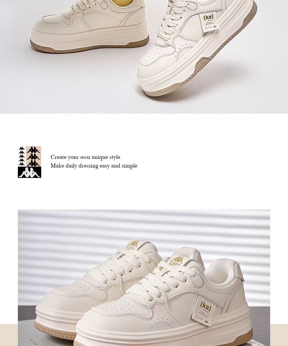 - Giày thể thao đế dày tăng chiều cao màu trắng Kappa dành cho nữ, giày thể thao đa năng mới mùa đông 2025, giày độc đáo không lặp lại.