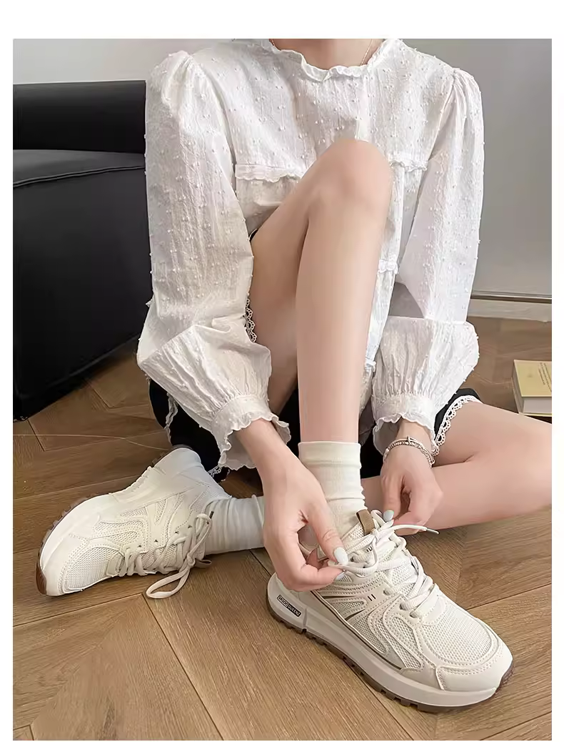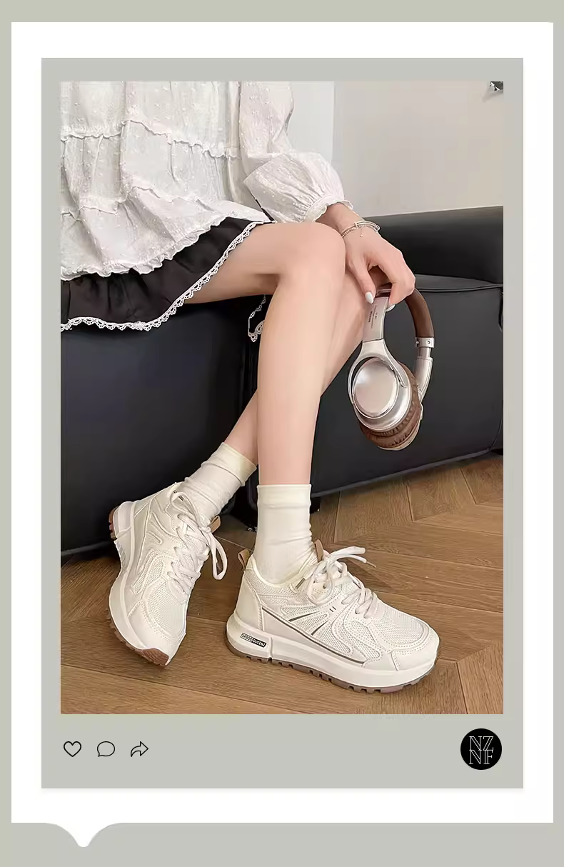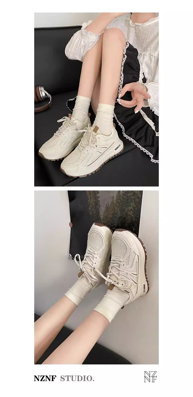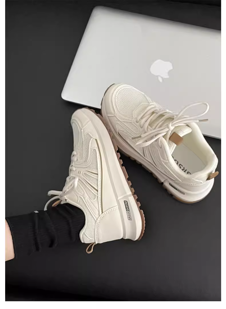 - Giày thể thao đế độn nhẹ kiểu Hàn Quốc dành cho nữ, mẫu mới thu đông 2025, đa năng phối chân váy, giày trắng retro siêu hot.