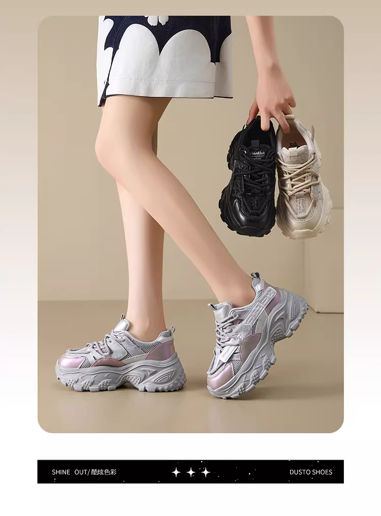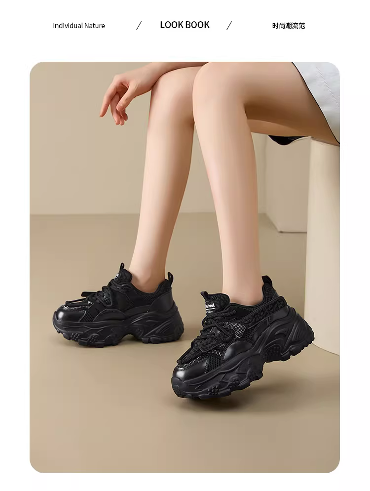 - Giày thể thao đế xuồng nữ 2025 mới thu đông, chất liệu lưới thoáng khí, giày tăng chiều cao dành cho nữ nhỏ nhắn