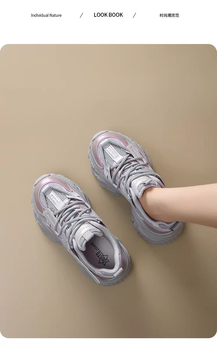 Giày thể thao đế xuồng nữ 2025 mới thu đông, chất liệu lưới thoáng khí, giày tăng chiều cao dành cho nữ nhỏ nhắn