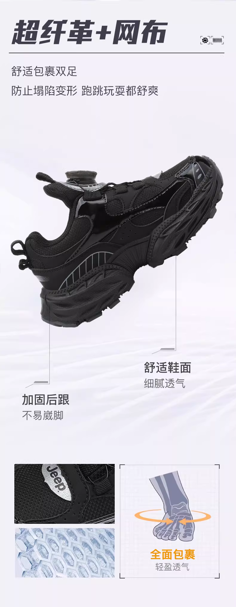 - Giày thể thao đen trẻ em Jeep, thoáng khí, chống trơn, kiểu dáng bố, dành cho bé gái, mẫu mới 2025, có nút bấm.