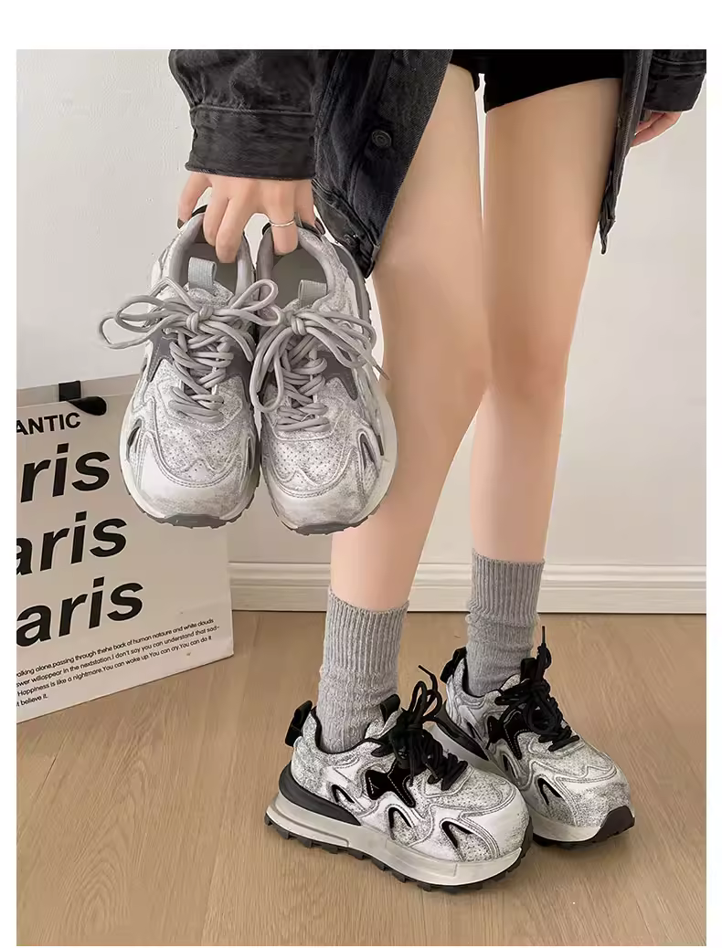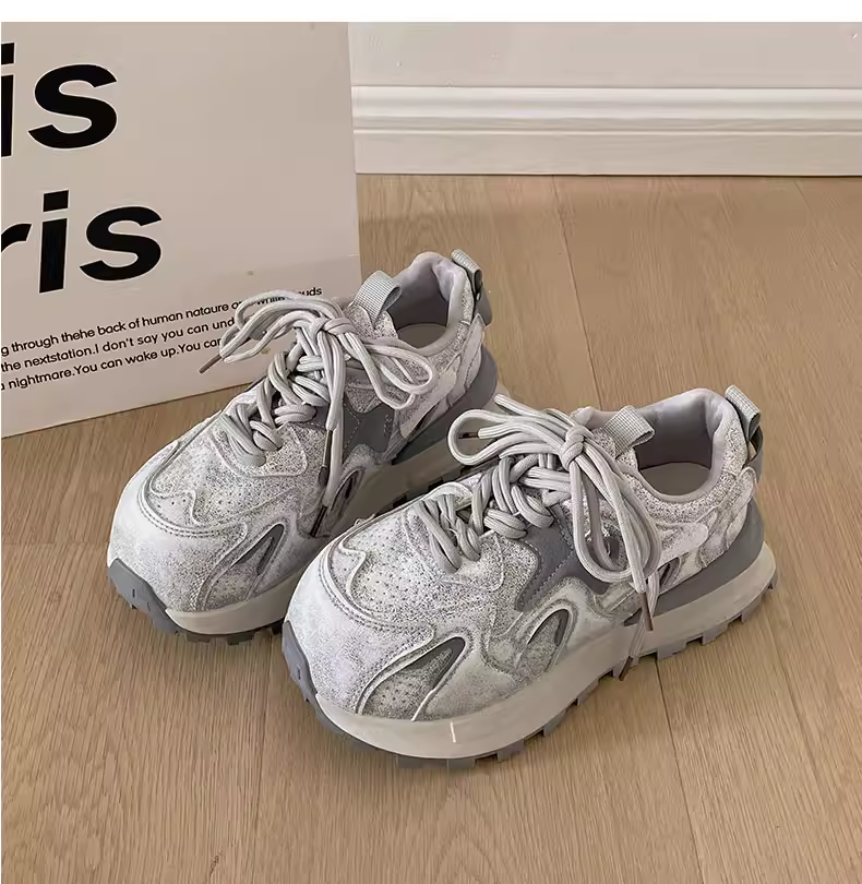 - Giày thể thao Đức đế dày cổ điển màu xám dành cho nữ, giày thể thao mùa thu mới 2025 phong cách Forrest Gump.