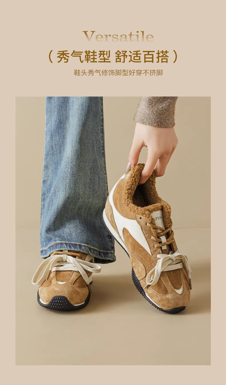 - Giày thể thao Đức lót lông Daphne dành cho nữ, mẫu mới mùa đông 2025, tăng chiều cao, màu nâu, kiểu dáng đa năng, ấm áp, chất liệu cotton.
