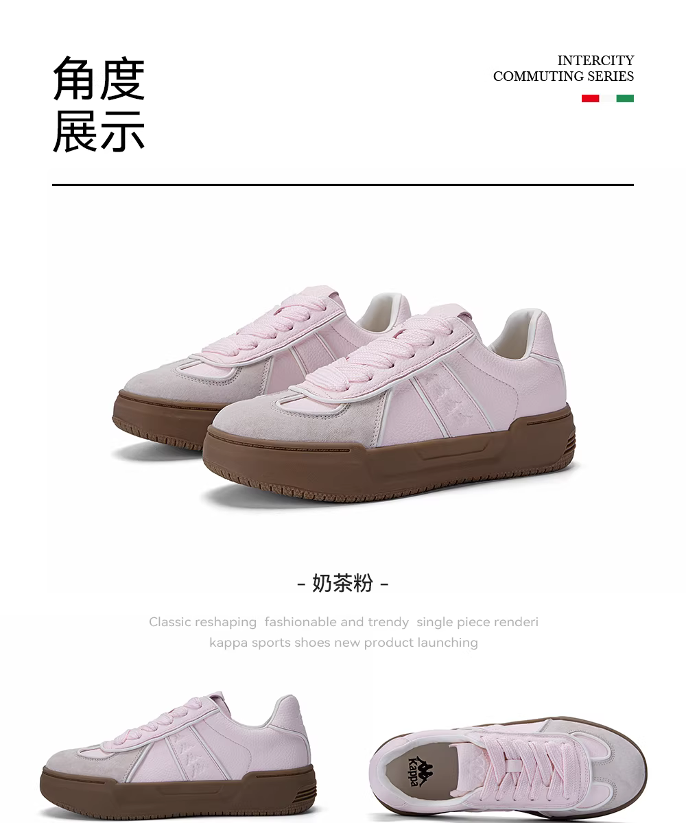 - Giày thể thao Kappa màu hồng dành cho nữ, mẫu mới mùa đông 2025, giày thể thao đế dày phong cách thường ngày phổ biến của Đức, giày thể thao đế mềm.