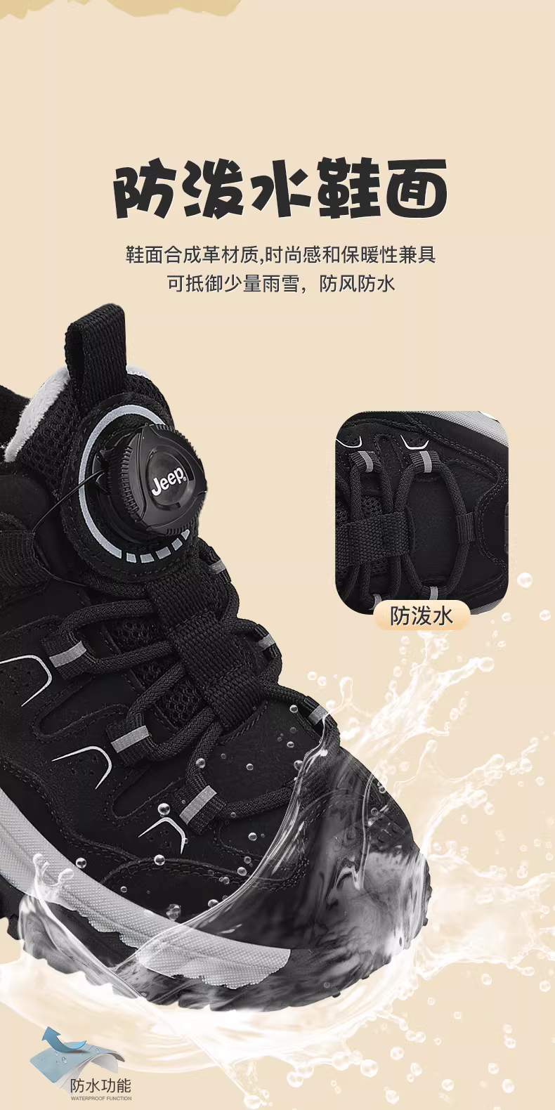 - Giày thể thao mùa đông dành cho bé gái của Jeep có lớp lót lông mềm, giày cotton hai lớp dành cho trẻ em, giày chống thấm nước và chống trượt mới dành cho bé trai năm 2025.