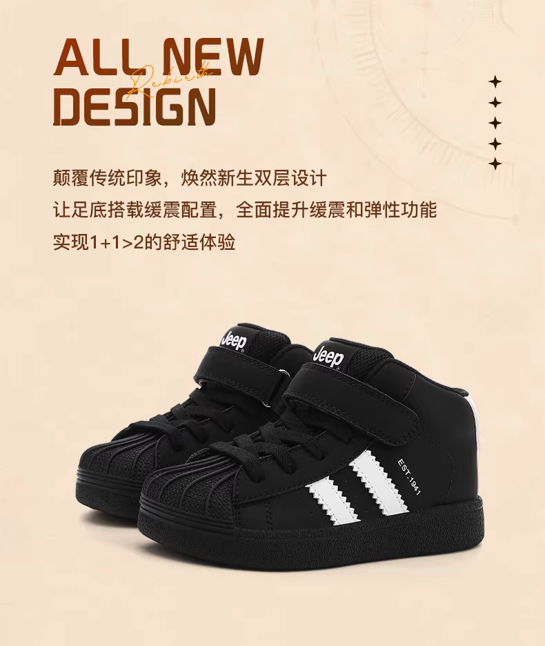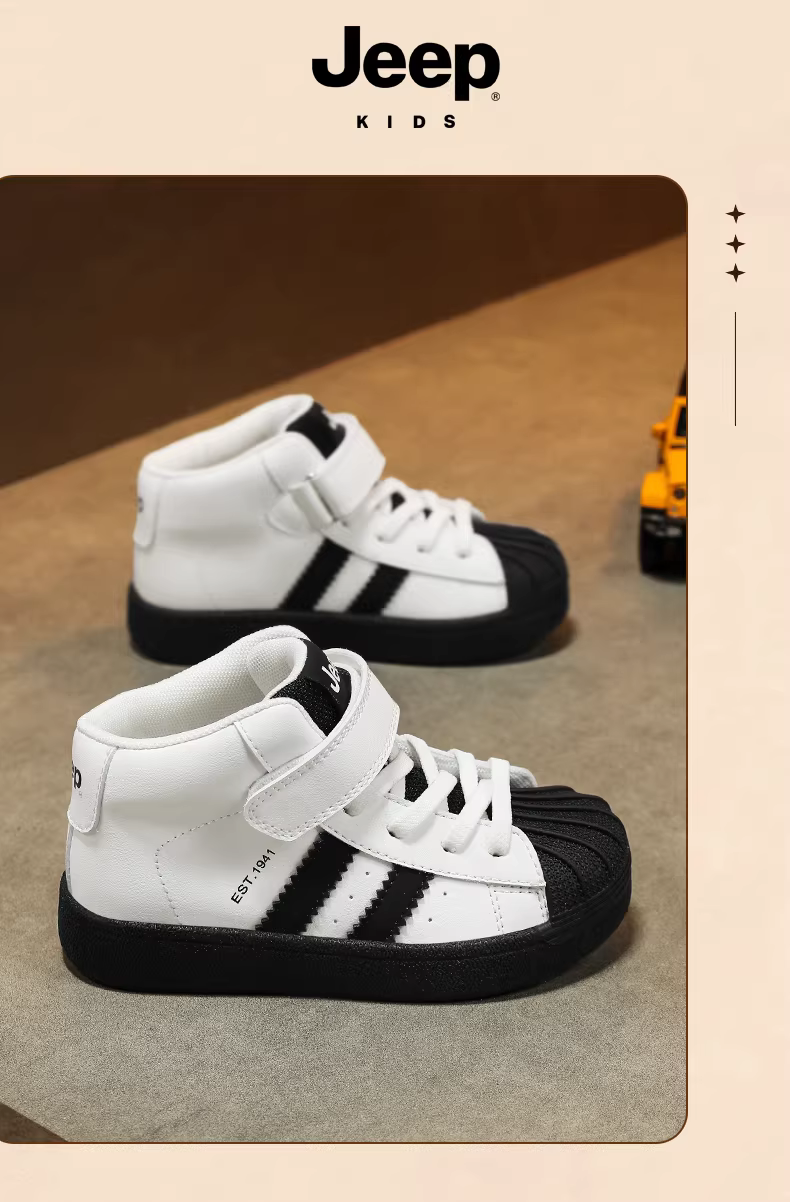- Giày thể thao mùa thu đông trẻ em Jeep, giày chạy bộ đế mềm, giày thể thao cổ cao, giày đen đa năng mới 2025 dành cho bé trai và bé gái