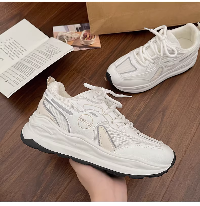 - Giày thể thao nữ 2025 kiểu mới mùa thu, giày bố, giày học sinh đế dày tăng chiều cao, nhẹ, thời trang, đa năng, màu trắng