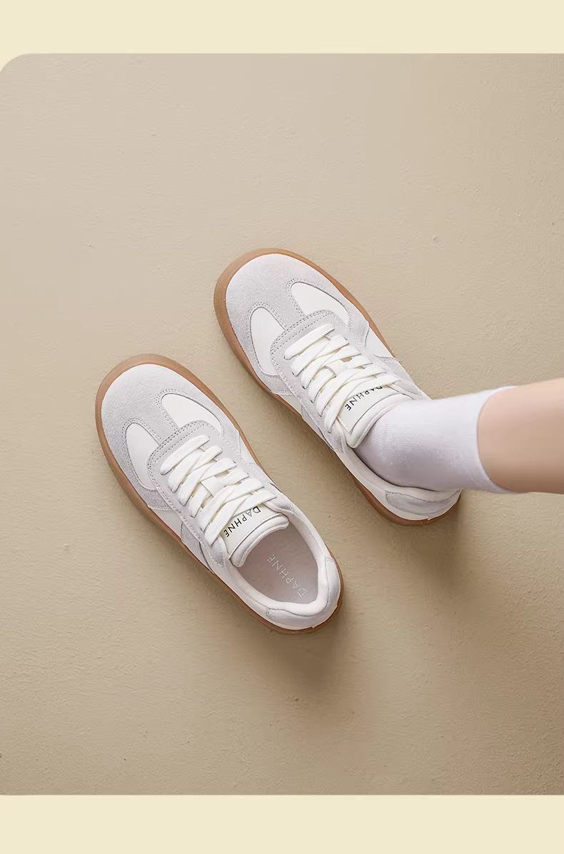 - Giày thể thao nữ Daphne kiểu Đức cổ điển, giày thể thao đế dày màu nâu rất thời trang, giày trắng tăng chiều cao đa năng mới năm 2025.