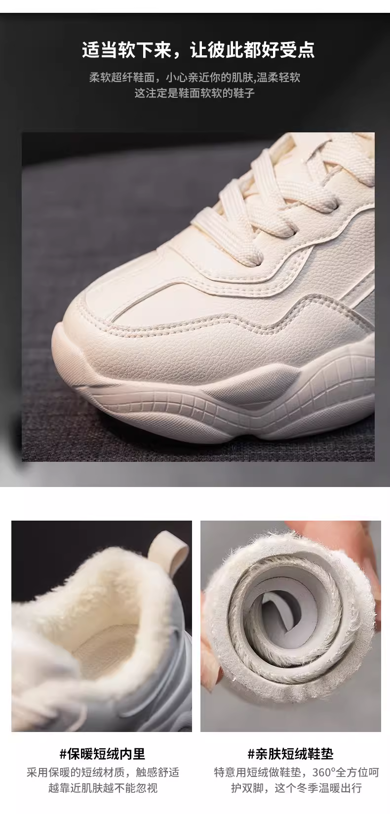 - Giày thể thao nữ Daphne lót lông cừu, chất liệu cotton, kiểu dáng mới mùa đông 2025, kiểu giày bố, giữ ấm, chống thấm nước, đế dày, đa năng, màu trắng
