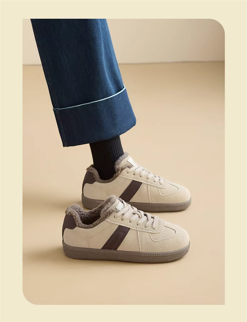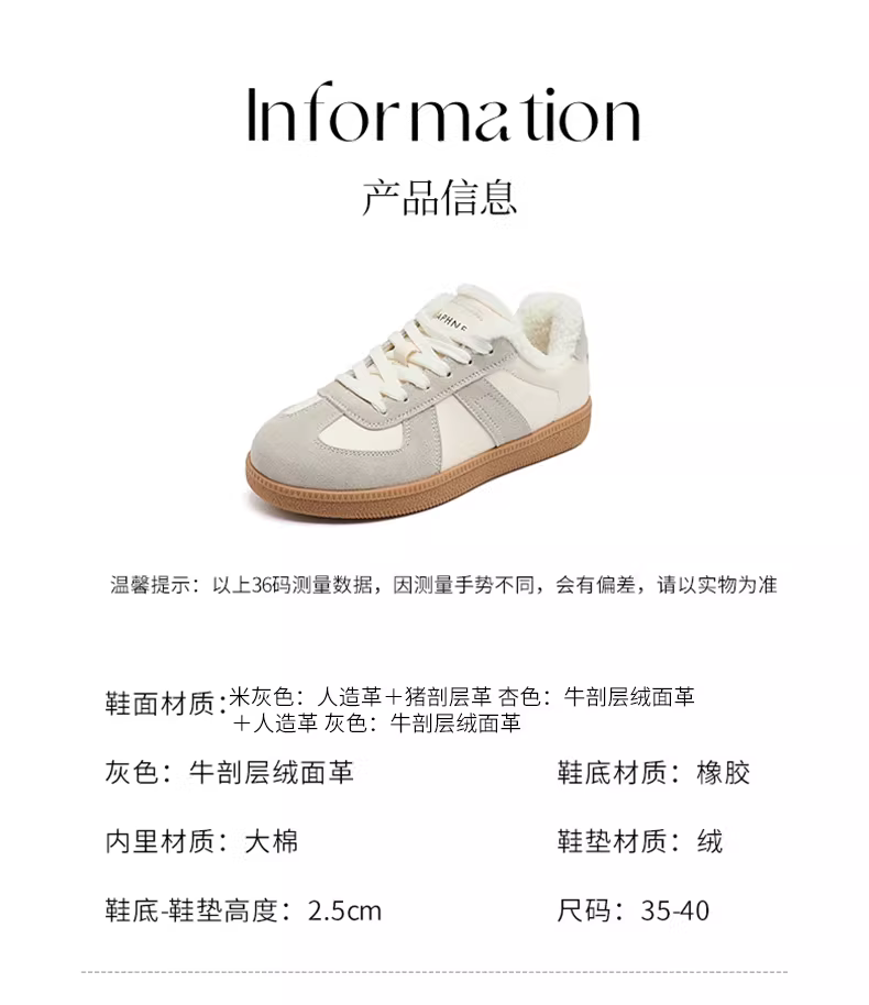 - Giày thể thao nữ Daphne lót lông cừu, kiểu Đức, mùa thu đông 2025, đế mềm, thoải mái, đa năng, màu trắng