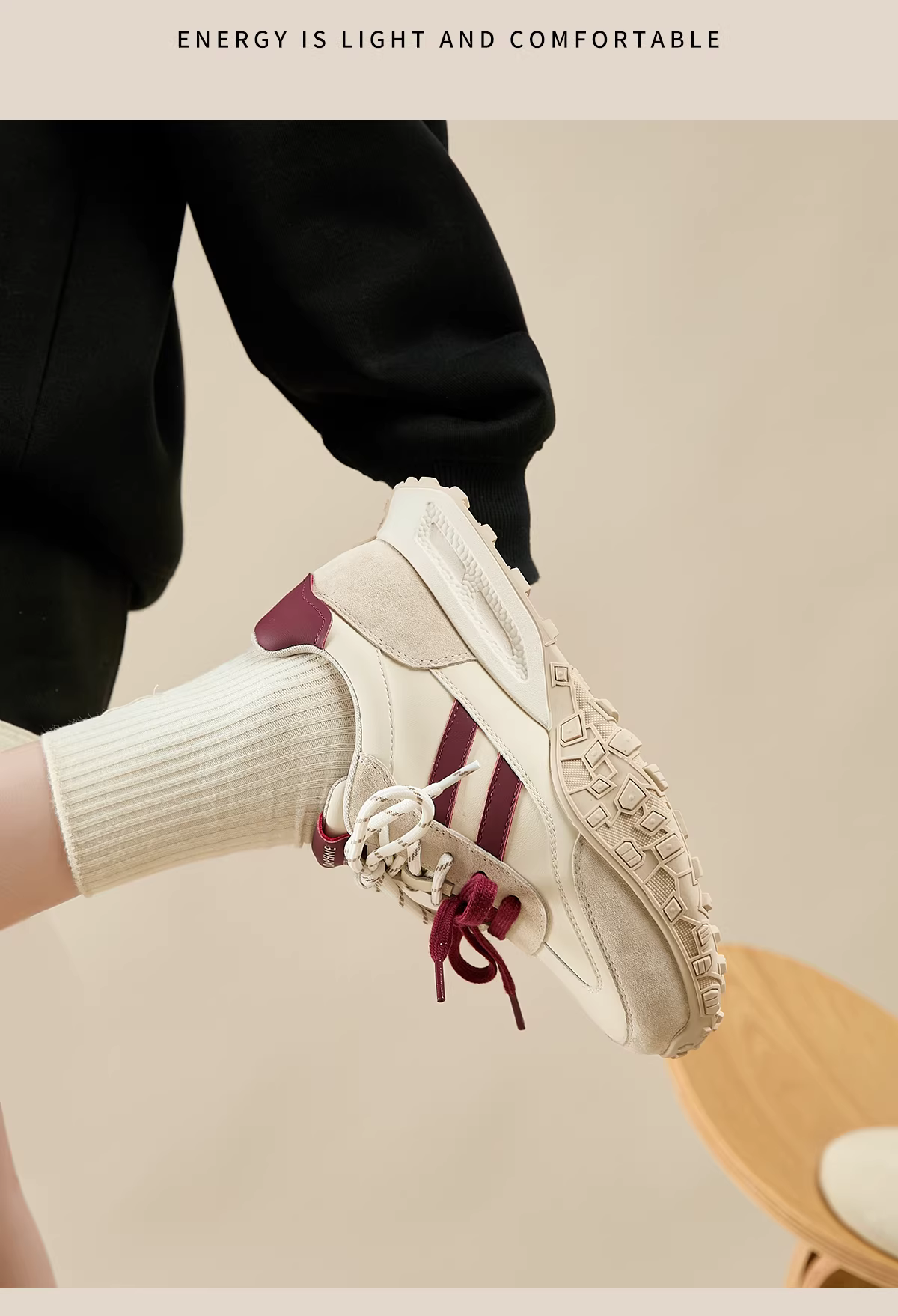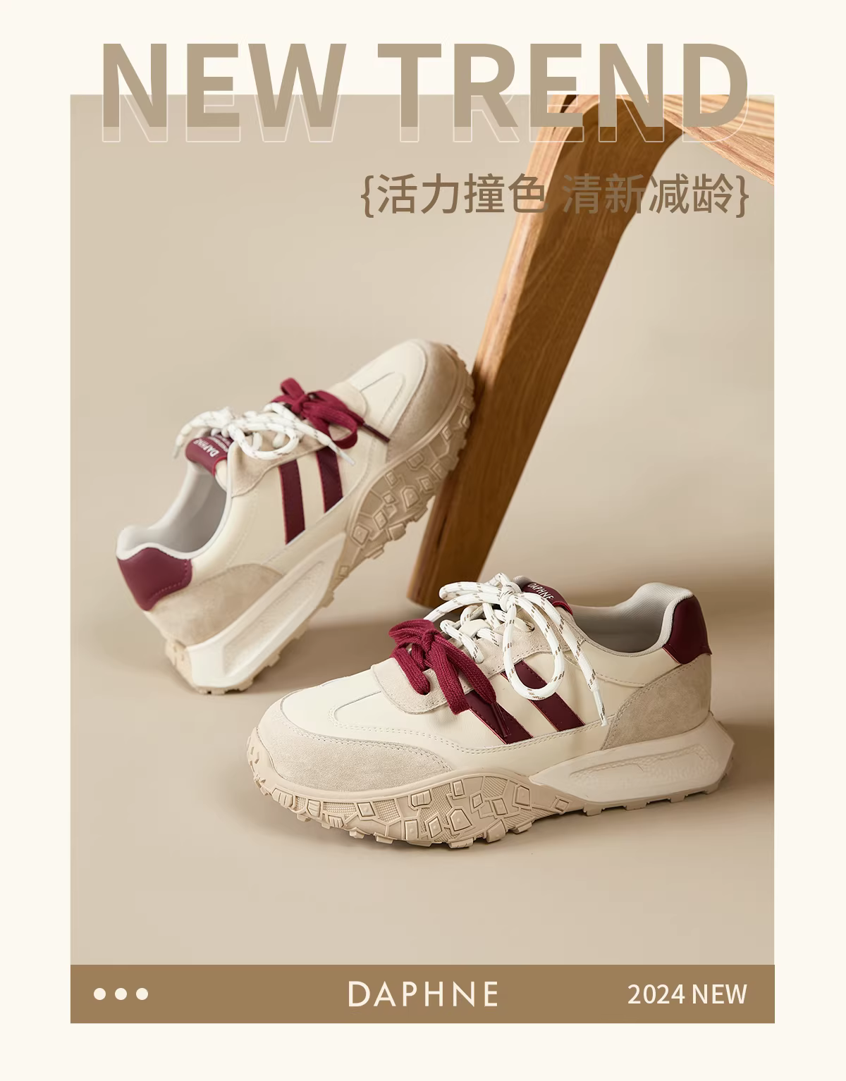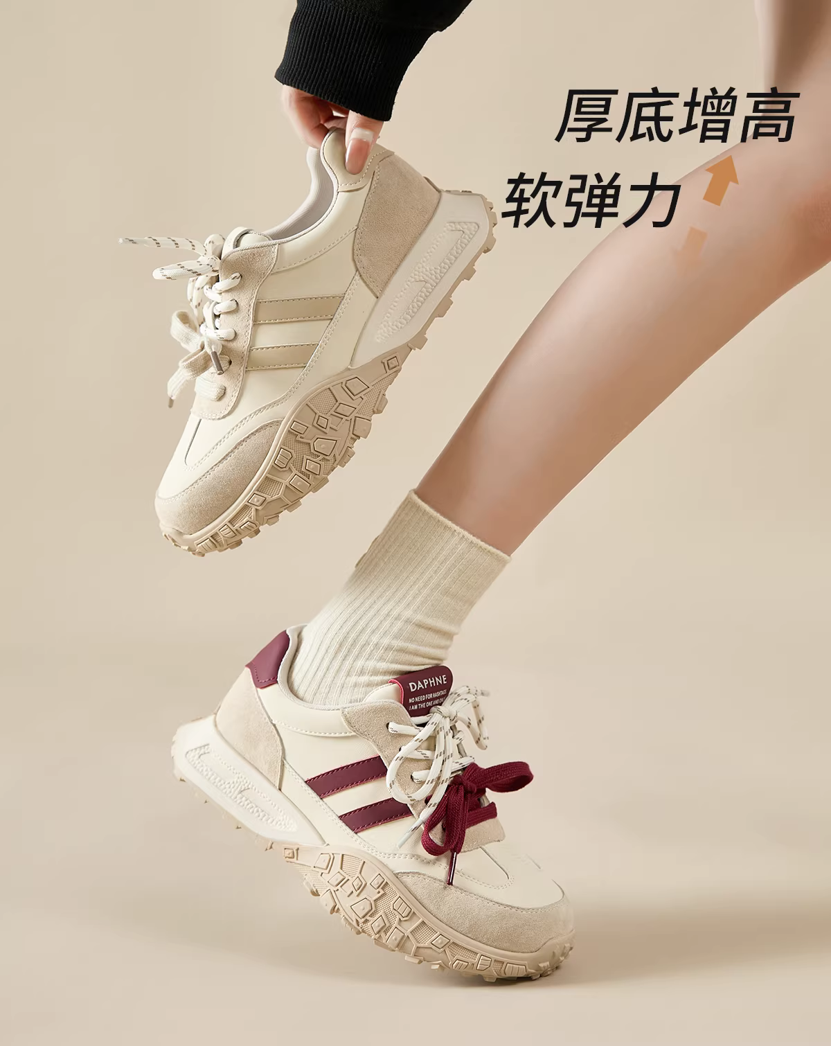 - Giày thể thao nữ Daphne màu đỏ, giày thể thao đế dày mùa thu 2025 mới, giày tăng chiều cao, giày bố mùa xuân thu.