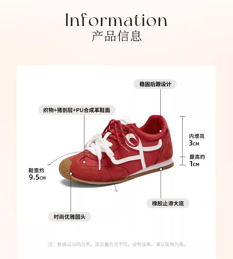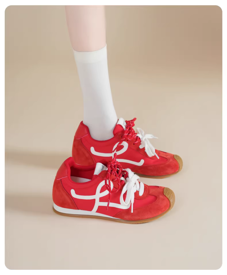 Giày thể thao nữ Daphne màu đỏ, kiểu dáng cổ điển, mùa thu mới 2025, đế dày, phong cách giản dị.