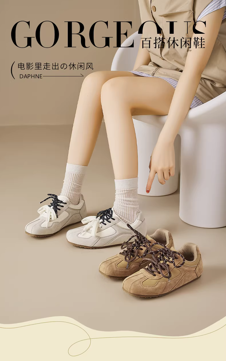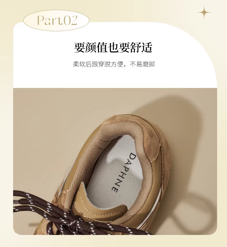 - Giày thể thao nữ Daphne màu nâu cổ điển, kiểu dáng mới 2025, giày Melard mặt da, giày thể thao mùa thu đông.