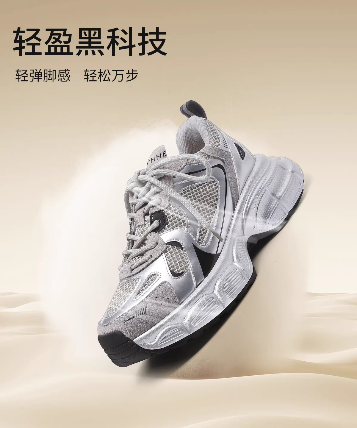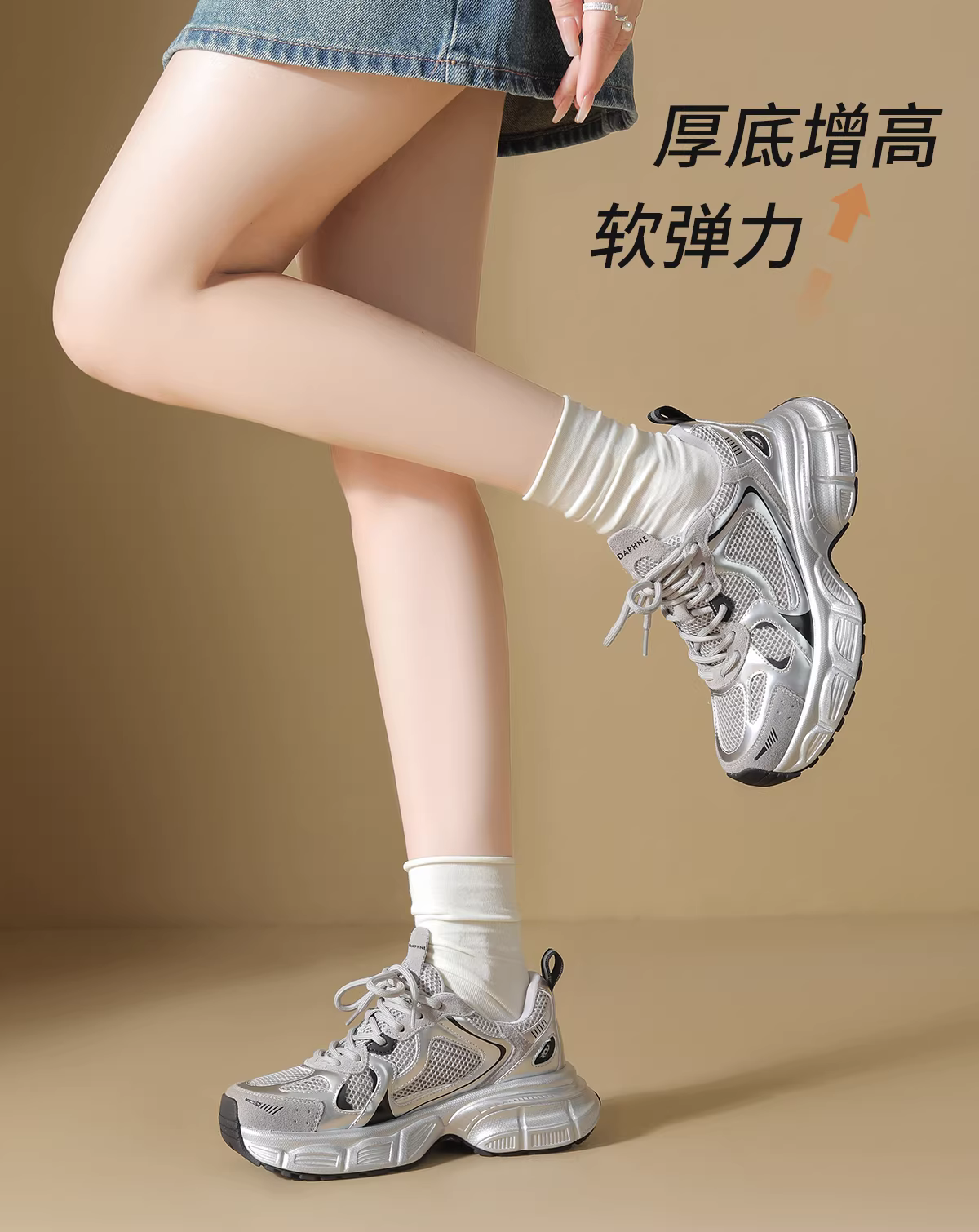 - Giày thể thao nữ Daphne Silver Dad 2025 mới mùa thu đông, giày thể thao đế dày tăng chiều cao, lót lông mềm mại, đa năng.