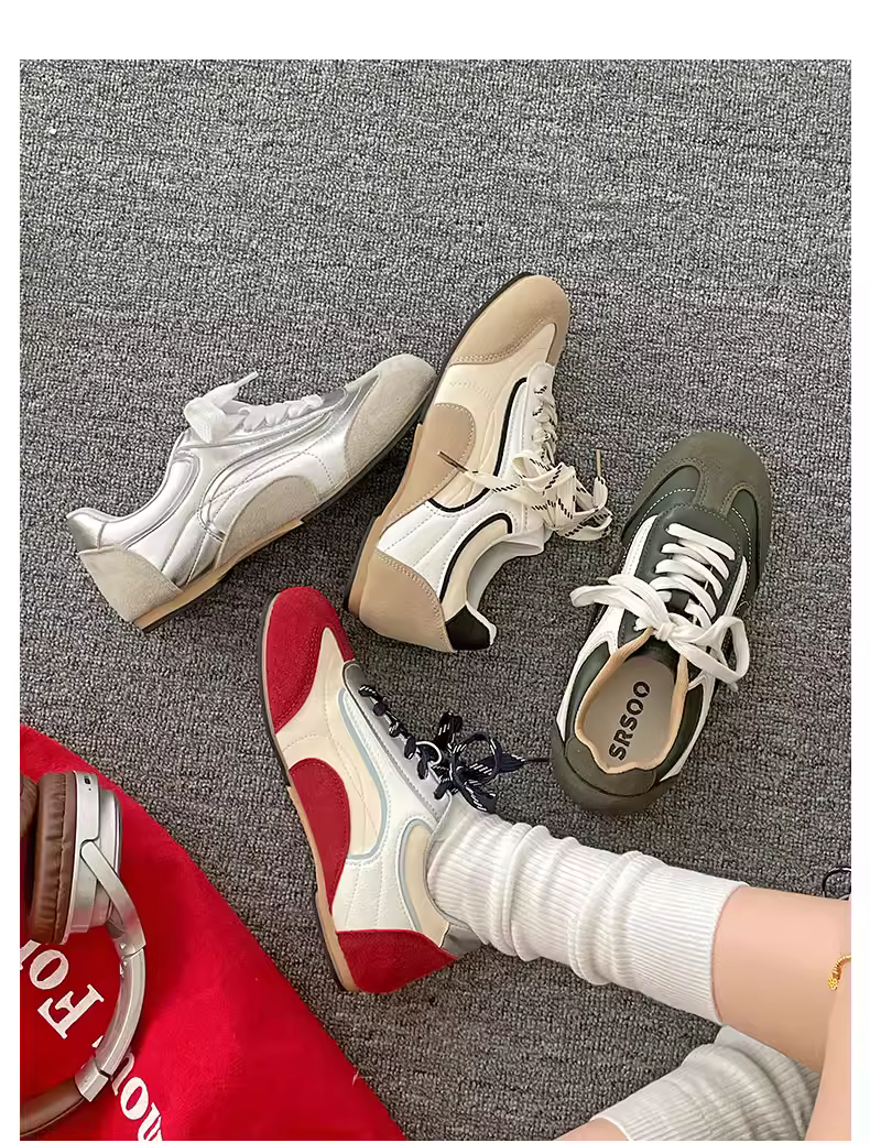 - Giày thể thao nữ đế bằng, kiểu retro, tăng chiều cao, mùa thu 2025, đa năng, đế mềm, phong cách thường ngày
