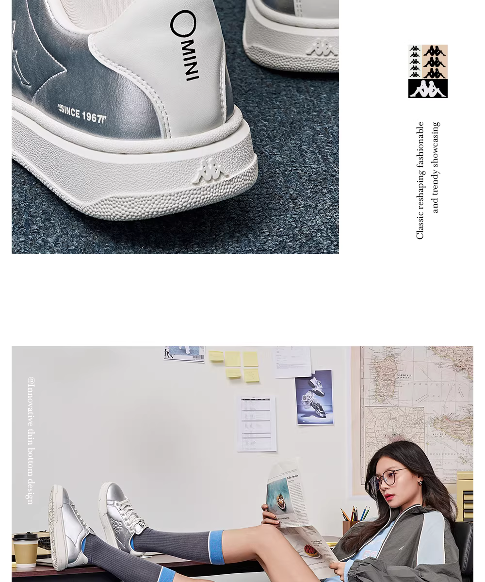 - Giày thể thao nữ đế dày Kappa mùa đông 2025 kiểu dáng retro thời thượng màu bạc, giày chạy bộ thường ngày