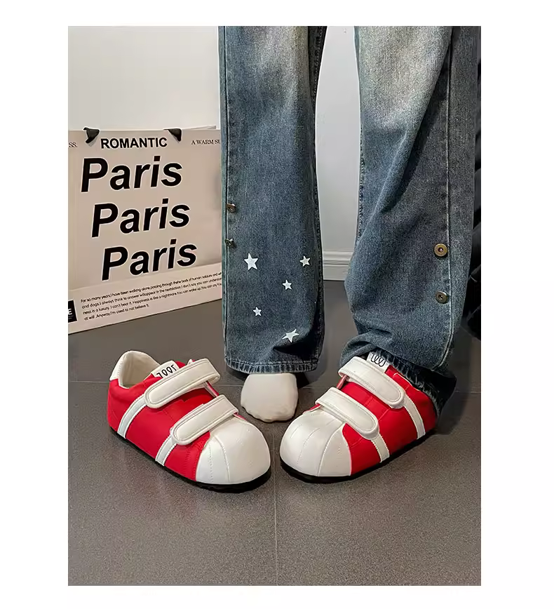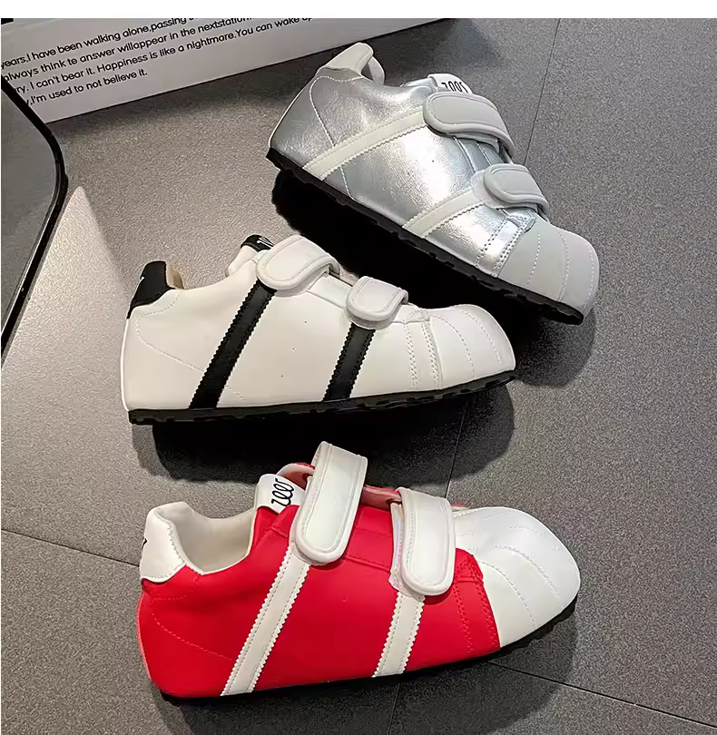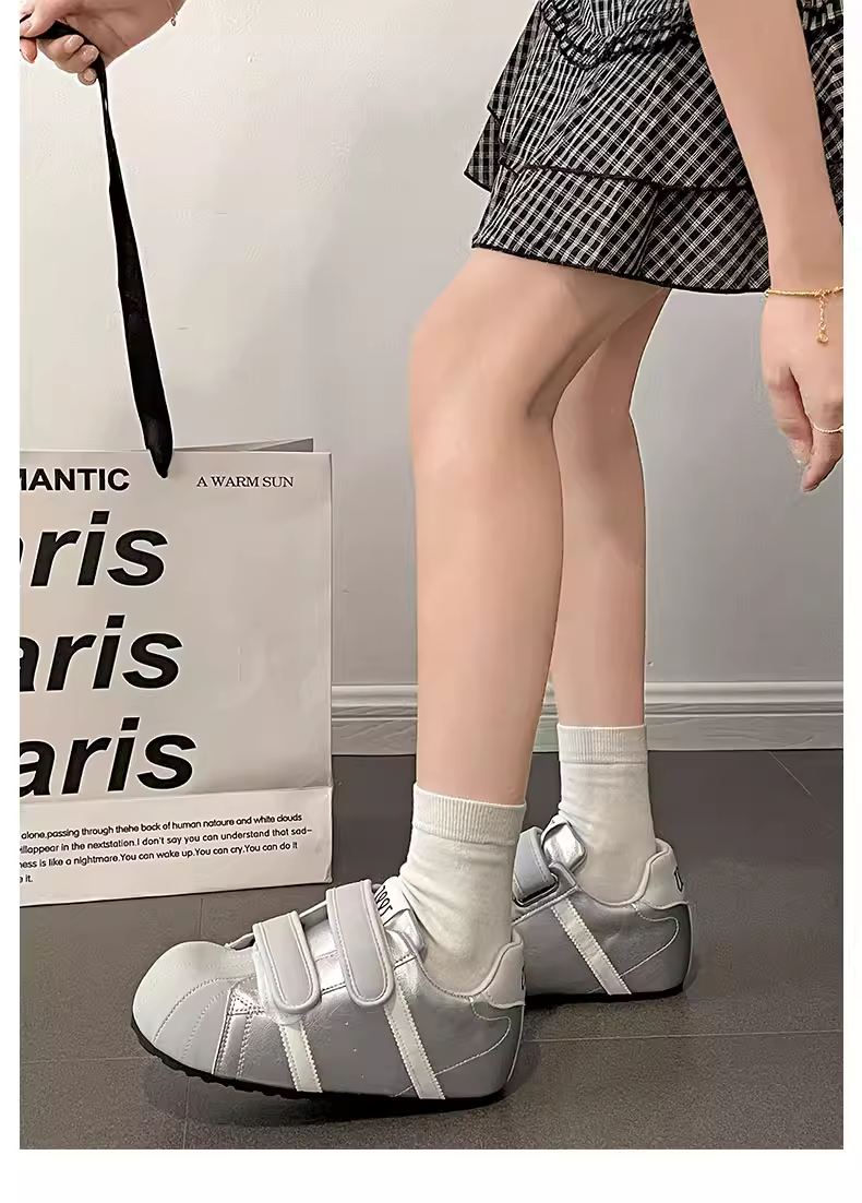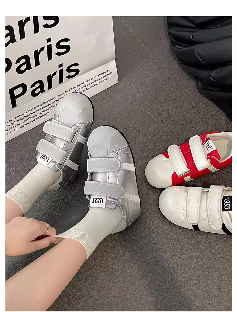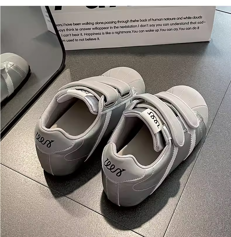 - Giày thể thao nữ đế dày màu trắng đa năng, nhẹ, kiểu mới mùa thu 2025, giày tập Đức đế mềm tăng chiều cao có khóa dán.