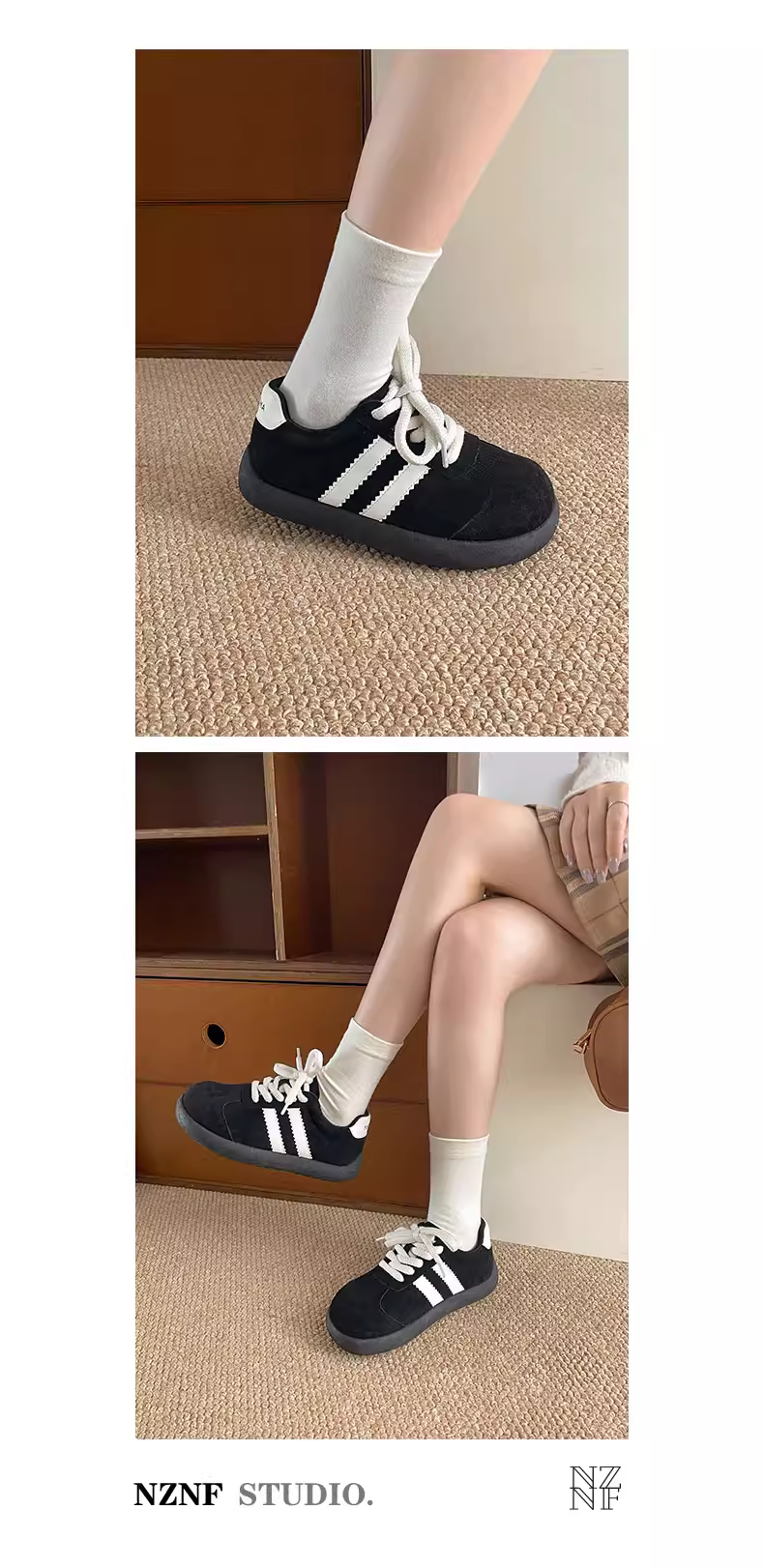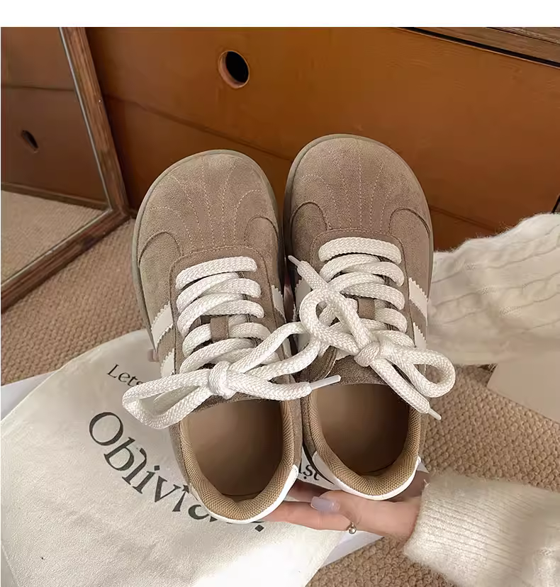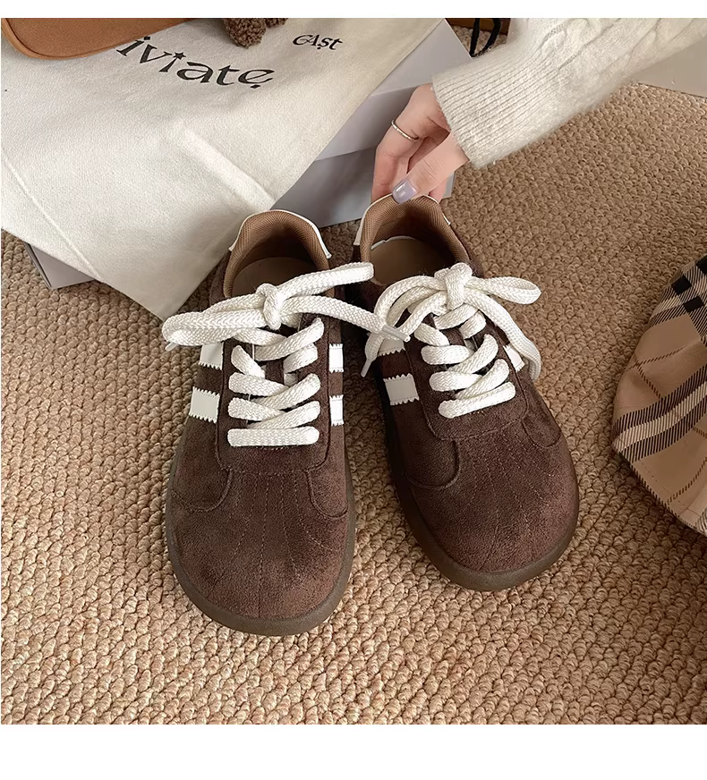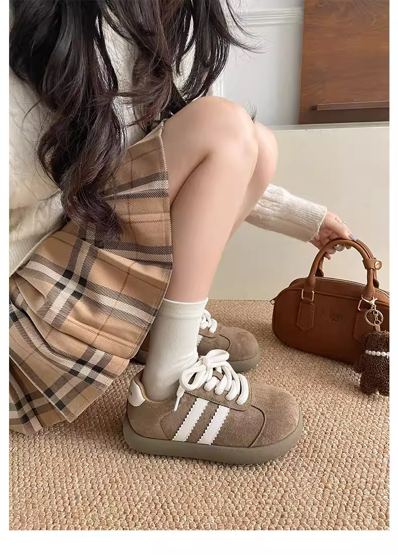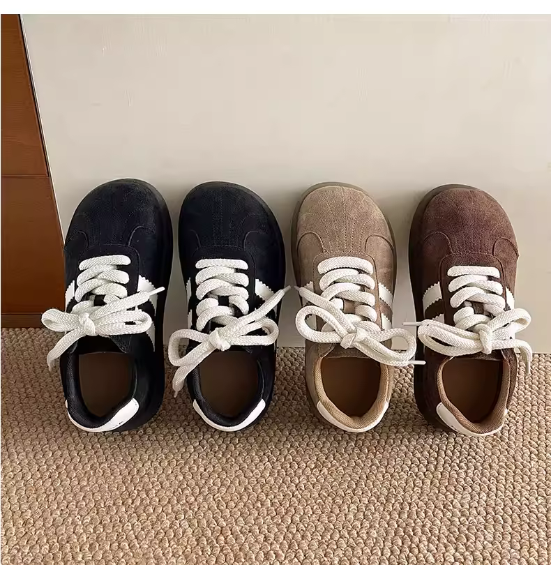 - Giày thể thao nữ đế dày phong cách retro đen, đa năng, kiểu dáng mùa thu mới 2025, phối cùng chân váy, giày thể thao đế mềm
