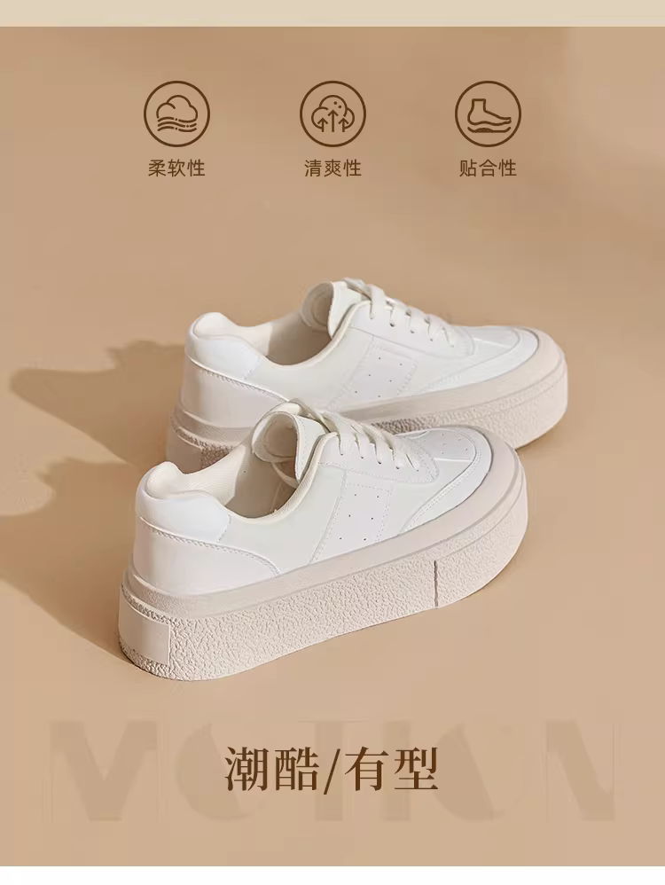 - Giày thể thao nữ đế dày phong cách thu đông 2025 mới, giày đa năng phối với quần ống rộng, giày trắng tăng chiều cao.