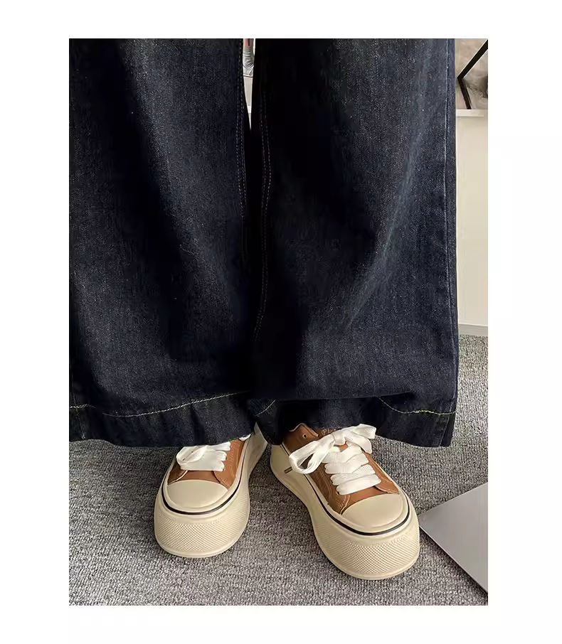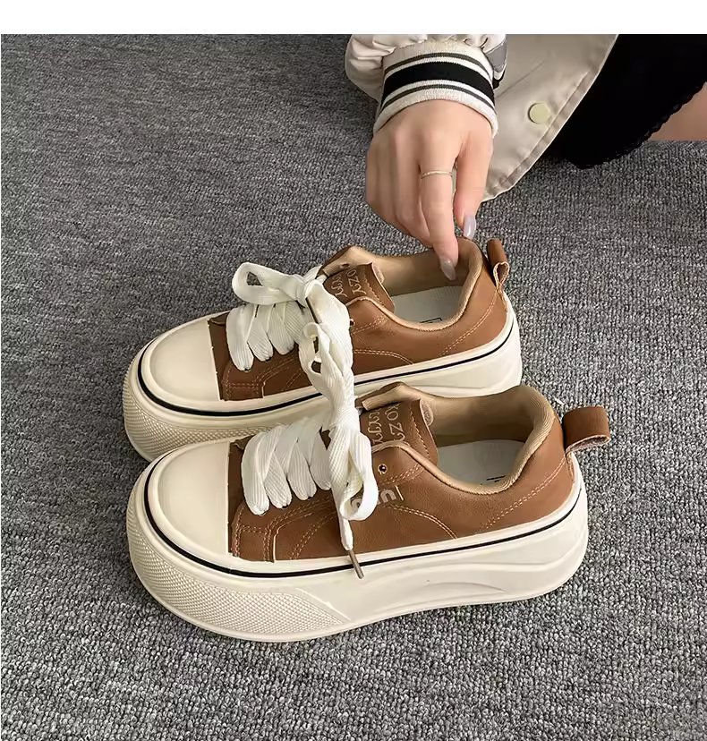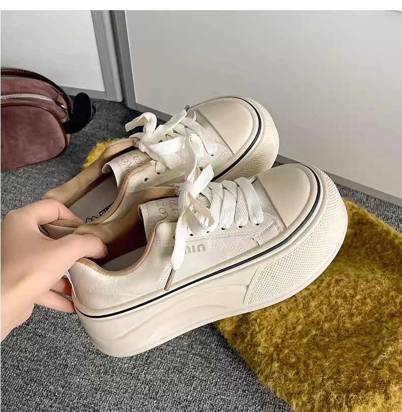 - Giày thể thao nữ đế dày retro màu trắng kiểu thu mới 2025, phối cùng chân váy, giày đế mềm, kiểu dáng thấp cổ, phong cách thường ngày