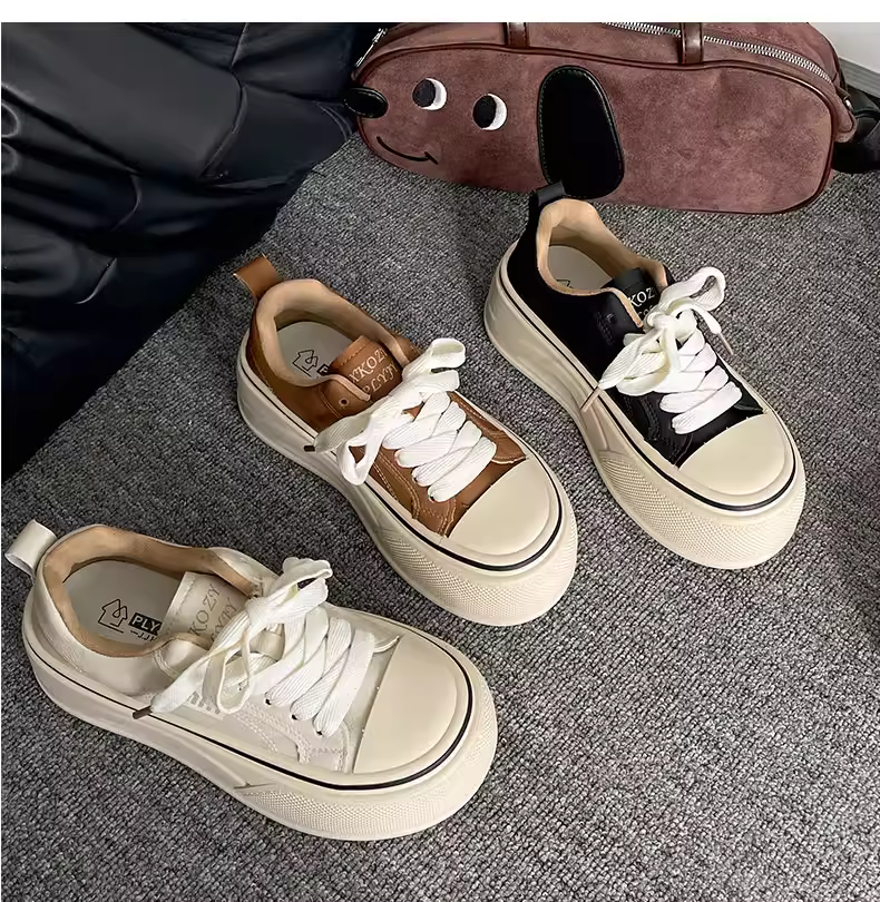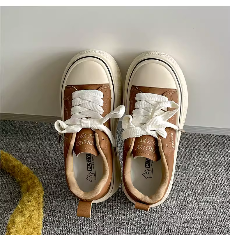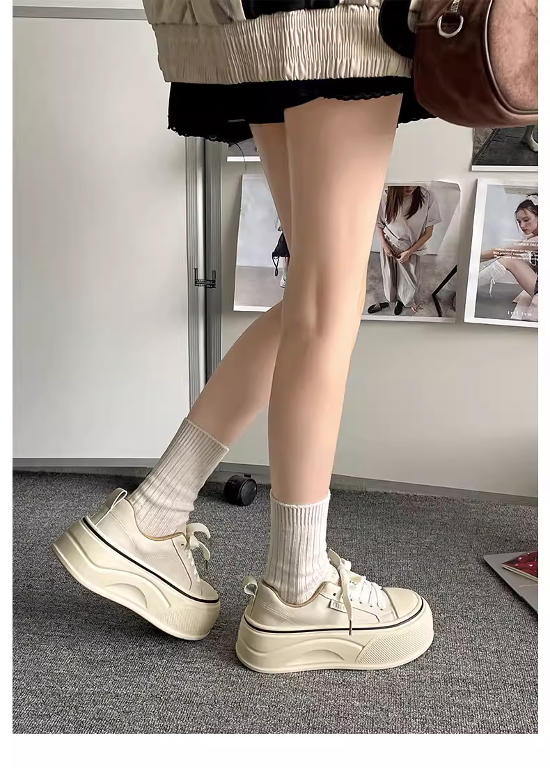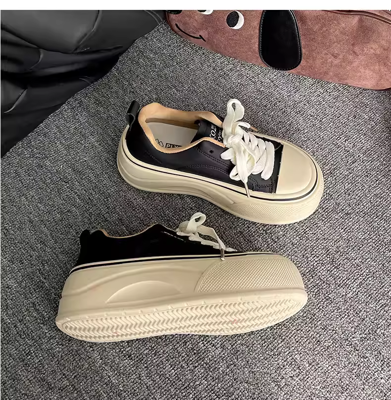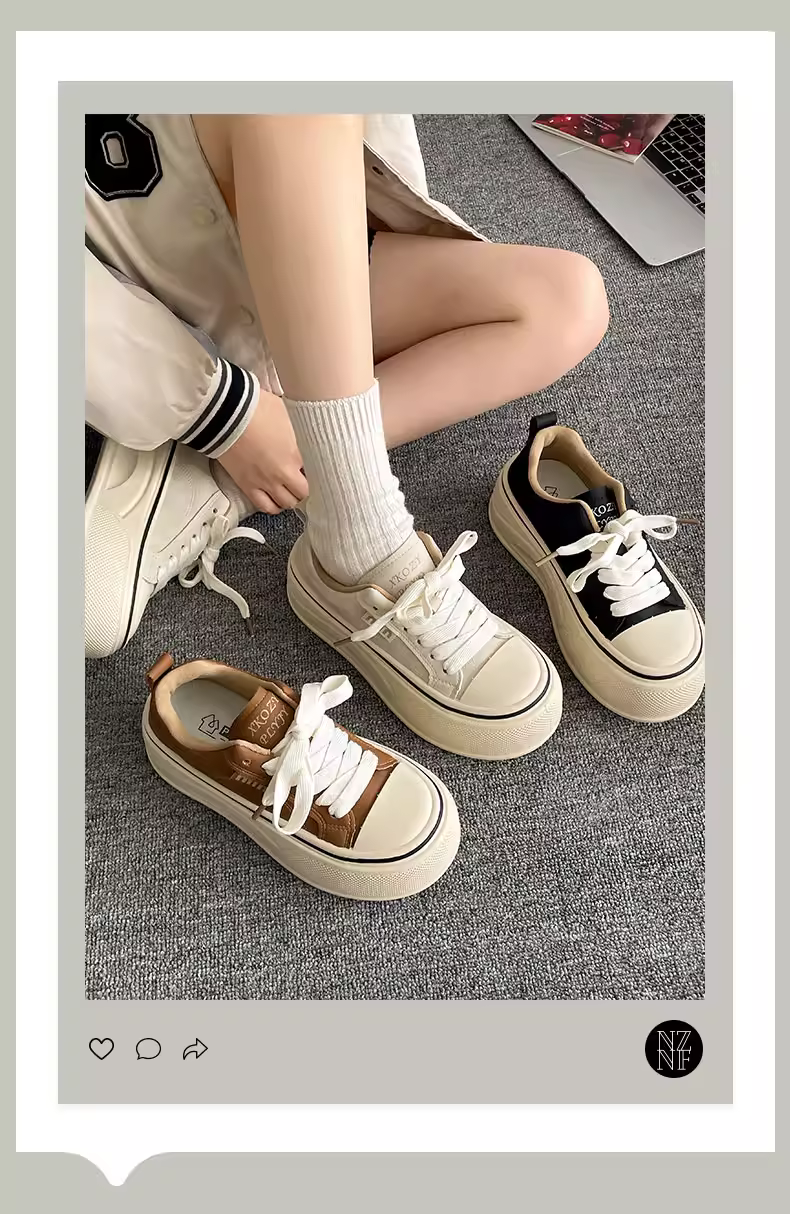 Giày thể thao nữ đế dày retro màu trắng kiểu thu mới 2025, phối cùng chân váy, giày đế mềm, kiểu dáng thấp cổ, phong cách thường ngày