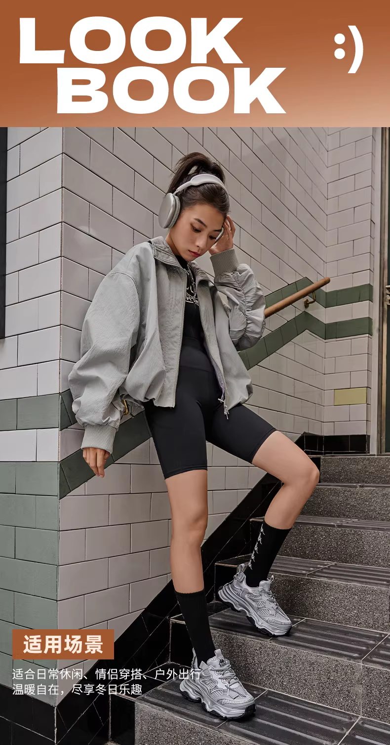 - Giày thể thao nữ Kappa bạc kiểu dáng bố mùa đông 2025 mới, đế dày, tăng chiều cao, thời trang, phong cách thường ngày